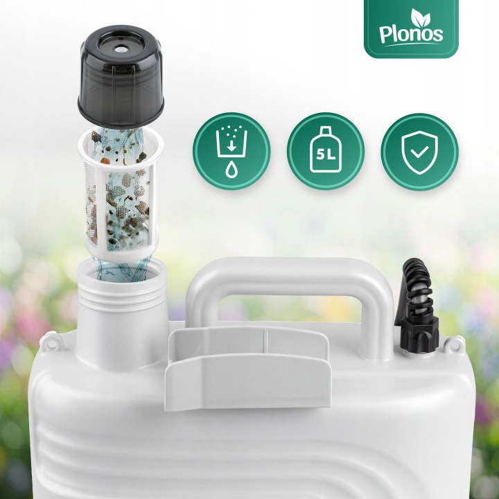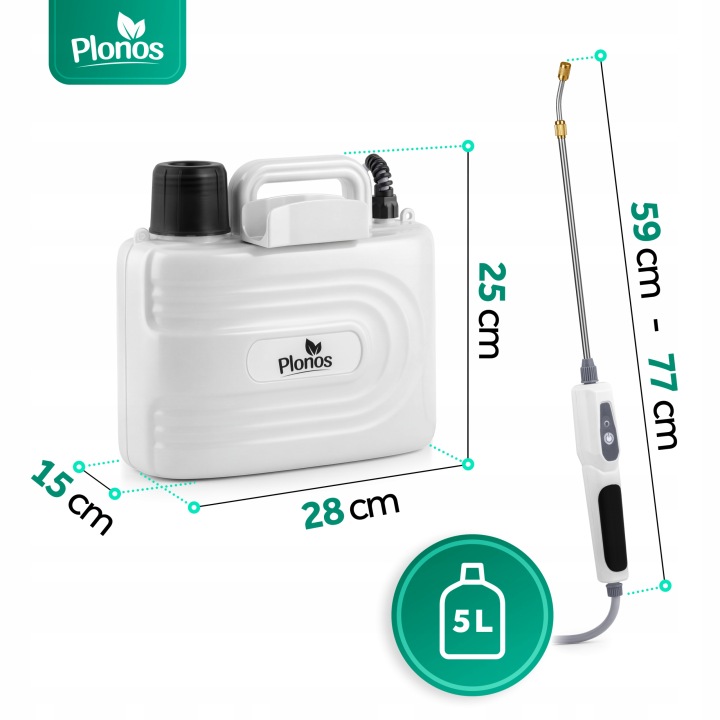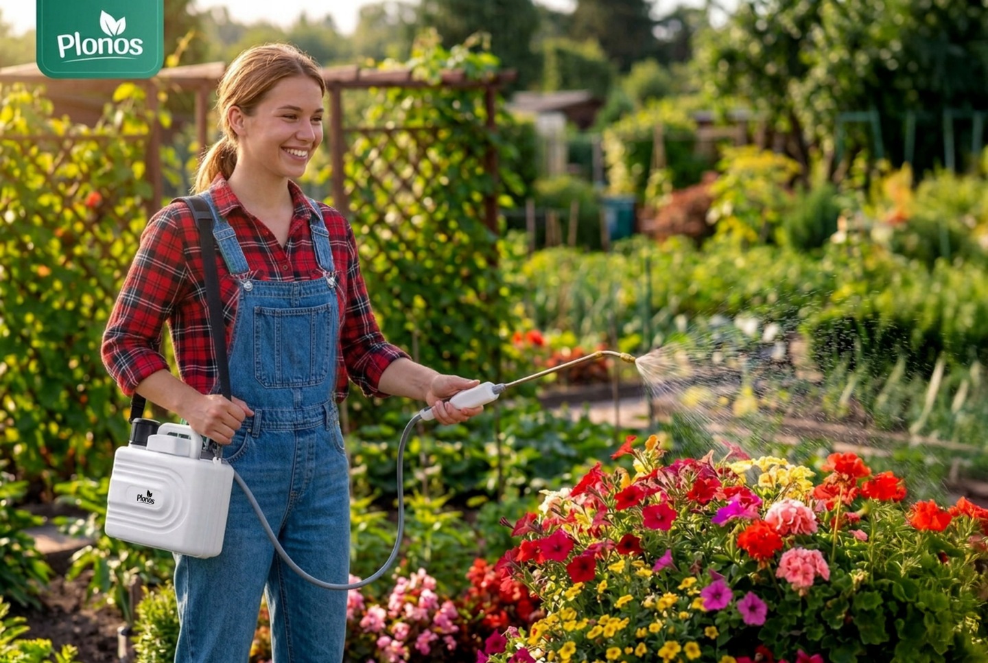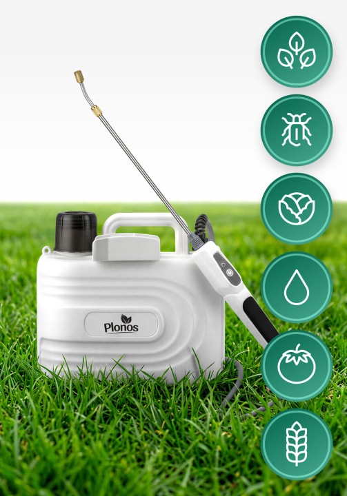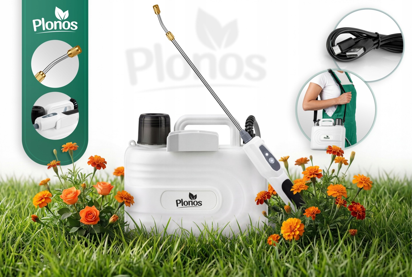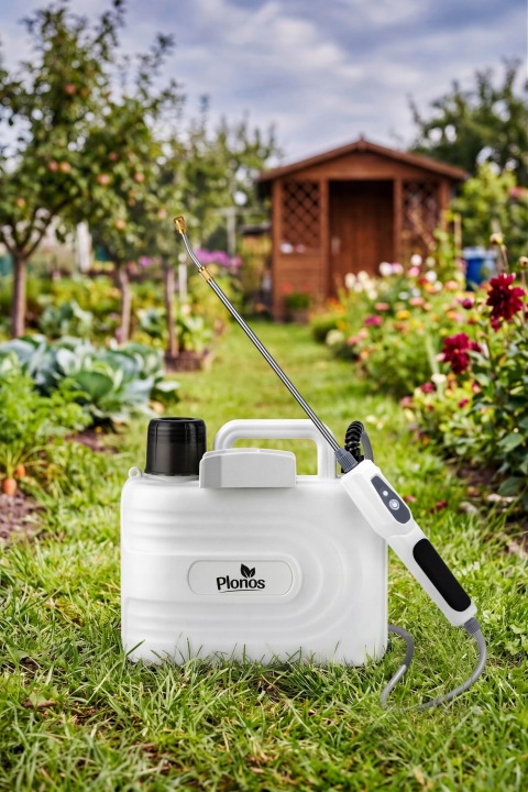 Akkumulátoros nyomásszóró PL-608, 5L | Plonos lehetővé teszi a növények egyenletes és kényelmes kezelését a mindennapi kerti munkák során. Akkumulátoros működésének köszönhetően szükségtelenné teszi a kézi pumpálást, és kényelmes és sima permetezést tesz lehetővé egyenletes folyadékeloszlással. Az állítható fúvóka biztosítja, hogy a sugár a felhasználás típusának megfelelően állítható legyen – a finom permettől a precíz közvetlen permetezésig.