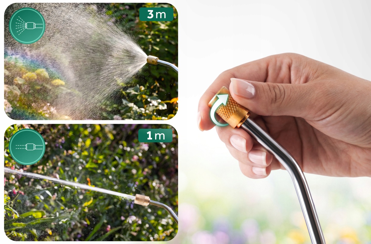 A megfelelő kapacitású kompakt tartály lehetővé teszi nagyobb terület kezelését gyakori utántöltés nélkül, míg a könnyű kialakítás és az ergonomikus jellemzők megkönnyítik a kezelést a kertben, üvegházban vagy a ház körül végzett munka során. A permetező ideális virágokhoz, cserjékhez, zöldségekhez és gyümölcsökhöz. Egyetlen eszköz működik a kertben, az üvegházban és a kertben is. Gyepápoláshoz és nagyobb területekhez is kiválóan alkalmas, lehetővé téve a gyors és kényelmes permetezést erőfeszítés nélkül.