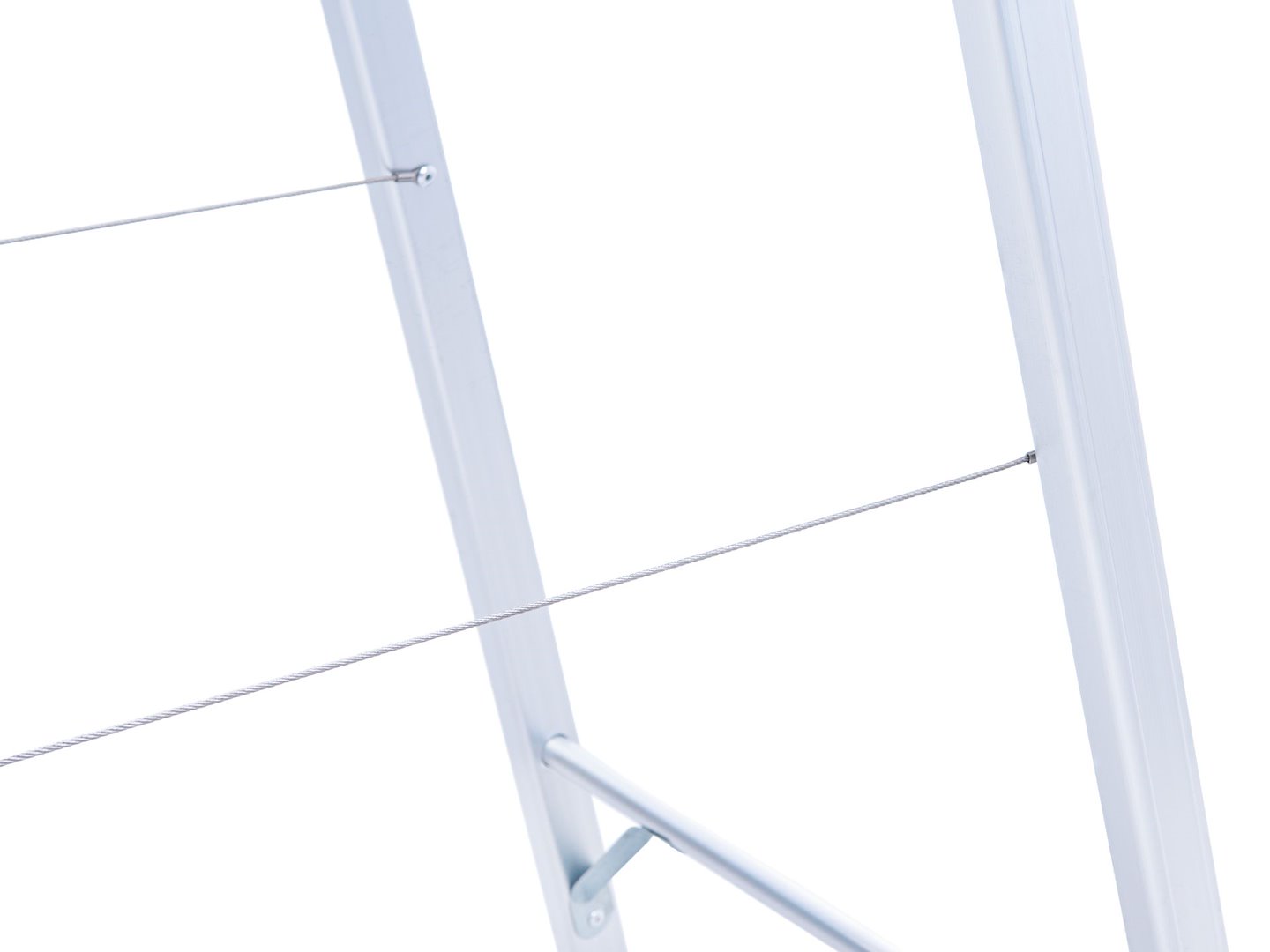 - Összecsukható – használat után a létra keskeny csomaggá összecsukható.