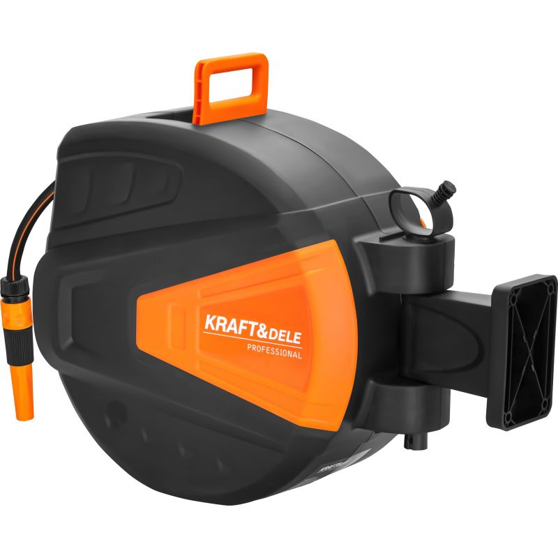 Automatikus tömlődob, 30m+2m, 1/2″ | KD2153 egy funkcionális automata dob, amelyet a kertben való kényelmes és átlátható használatra terveztek. Az automatikus feltekercselő rendszer lehetővé teszi a tömlő gyors tárolását gubancolódás és törés nélkül, ami jelentősen növeli a mindennapi munka kényelmét. Ez a modell falra szerelhető, így helyet takarít meg és rendet tart a kertben vagy a garázsban. Ezenkívül fogantyúval is fel van szerelve a dob könnyű szállításához. Masszív szerkezetének és tartós PVC anyagának köszönhetően rendszeres használatra alkalmas.