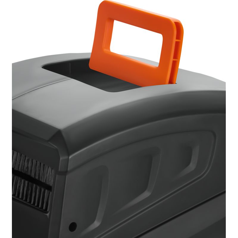 A dob falra szerelhető, és forgó fogantyúval rendelkezik, így a működési irányt attól függően állíthatja be, hogy hol öntöz. A beépített vezetősín biztosítja az egyenletes feltekeredést, és megvédi a tömlőt a megtöréstől és az összegubancolódástól. Ezenkívül a fékező mechanizmus korlátozza a vég hirtelen visszahúzódását, a tömlő kívánt hosszúságban történő rögzítésének lehetősége pedig lehetővé teszi, hogy pontosan úgy dolgozzon, ahogyan szükséges.