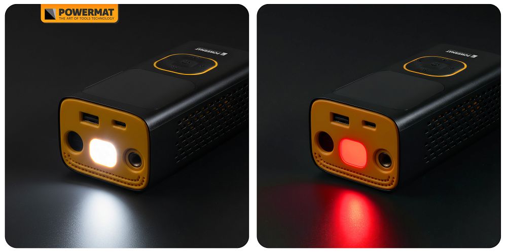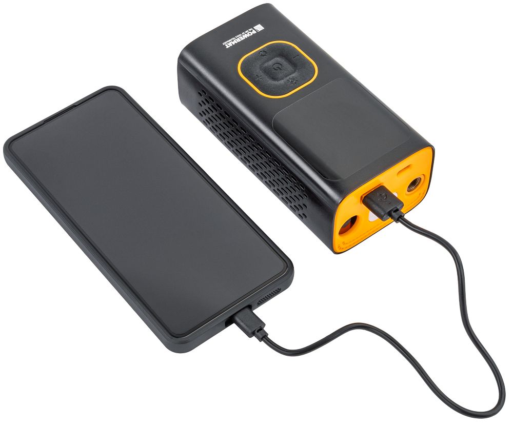 Túlmelegedés-érzékelővel és helytelen nyomás és helytelen töltés elleni védelemmel van felszerelve, amely mind a készüléket, mind a felhasználót védi. A szélsőséges hőmérsékleti körülményekhez való alkalmazkodás növeli a készülék megbízhatóságát a műhelyben, az úton és a terepen. Az USB-port lehetővé teszi a készülék külső akkumulátorként való használatát. A LED-lámpa folyamatos világítást, vészvilágítást és SOS módokat kínál, jelentősen növelve a kompresszor funkcionalitását rossz fényviszonyok között.