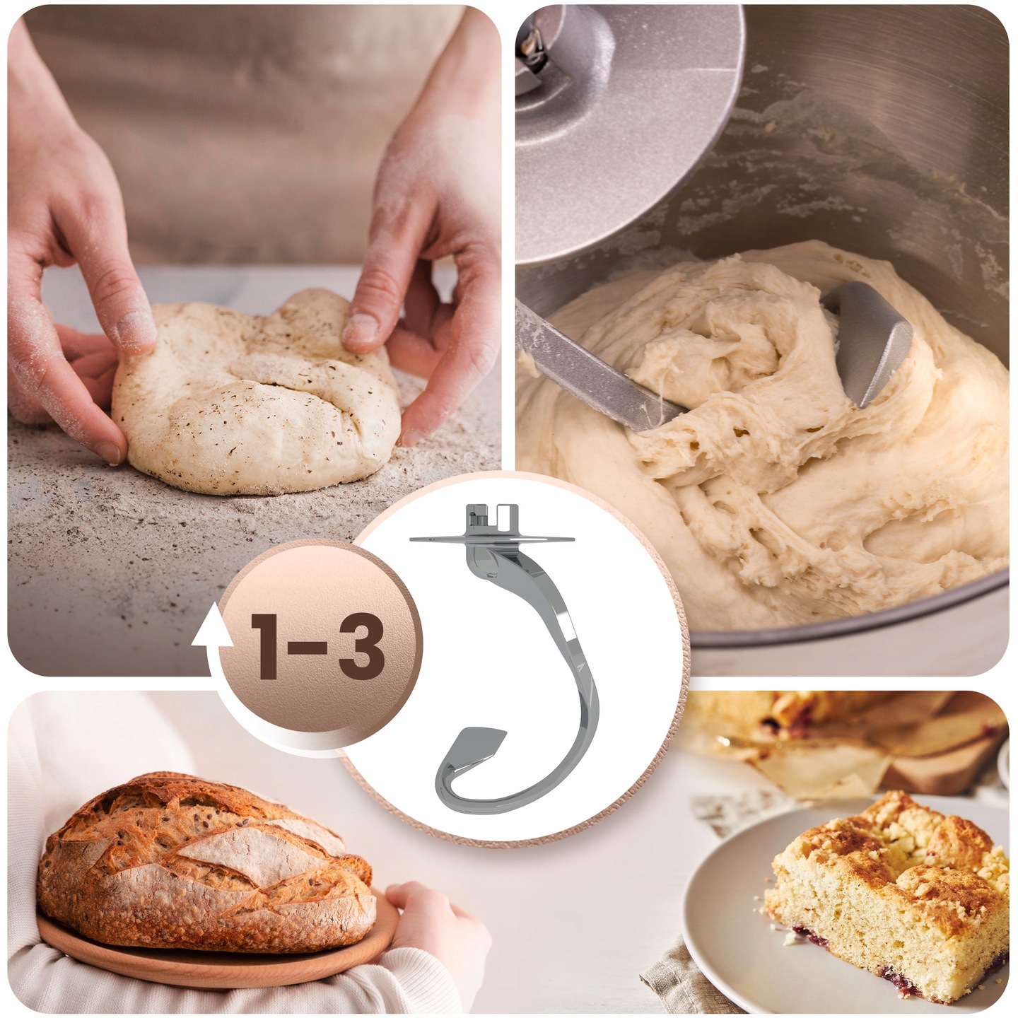 A csomag számos tartozékot tartalmaz (dagasztóhorog, keverőgép, habverő), így a robot mindent meg tud oldani az élesztős vagy kenyértésztától a krémeken át a habos tejszínhabba. Minden tartozéknak más a célja – az ideális sebesség, a tökéletes eredmény. A dagasztóhorog 1-3-as sebességfokozaton, a tejszín- és töltelékkeverő a 2-4-es fokozaton, a tejszínhab-keverő pedig 5-6-os sebességfokozaton éri el a teljes potenciálját – mindig tökéletes állaggal.