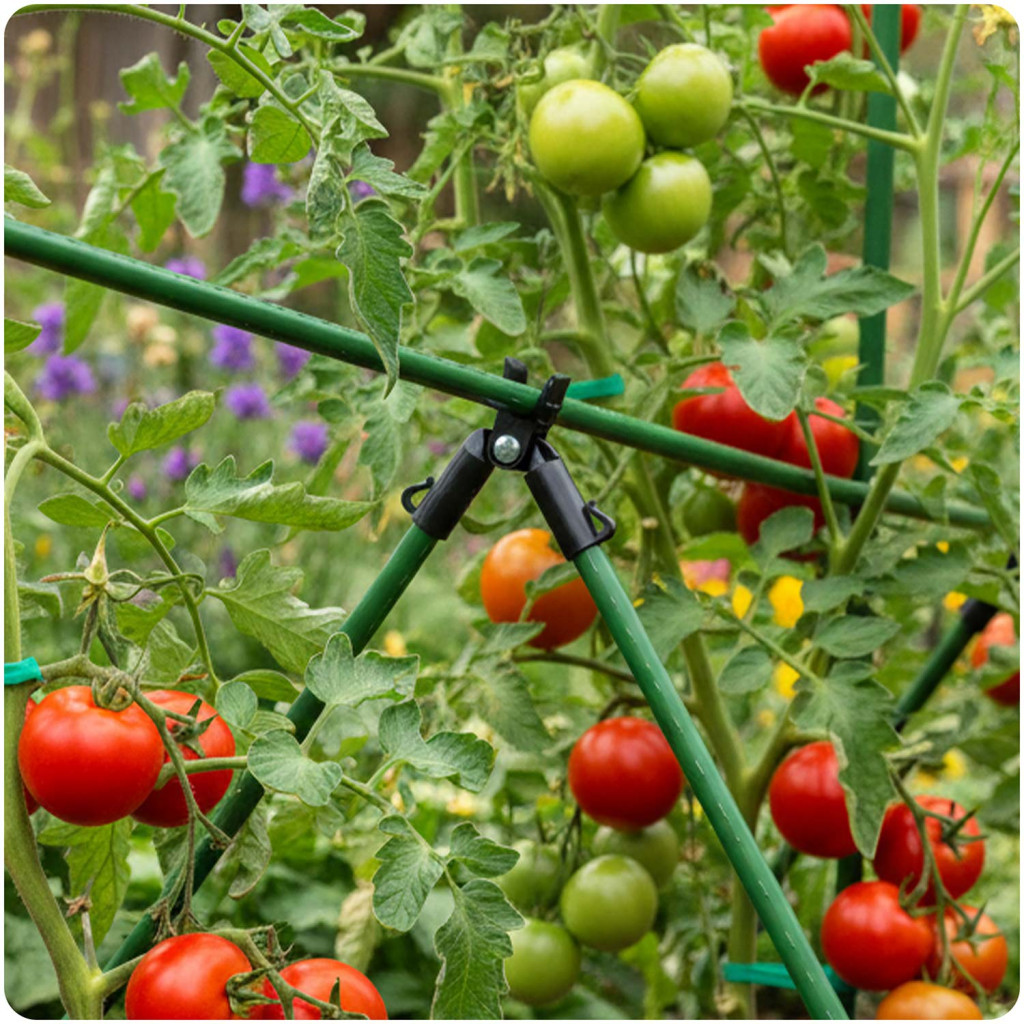 A 11 mm átmérőjű rudak precíz kialakítása garantálja a stabil csatlakozást kilazulás nélkül és a könnyű összeszerelést szerszámok nélkül. A csatlakozók univerzális felhasználásának köszönhetően paradicsom, uborka vagy futónövények termesztéséhez, de különféle kerti építmények létrehozásához is használhatók. A moduláris megoldás megkönnyíti a szétszerelést, tárolást és szezonon kívüli újrafelhasználást is.