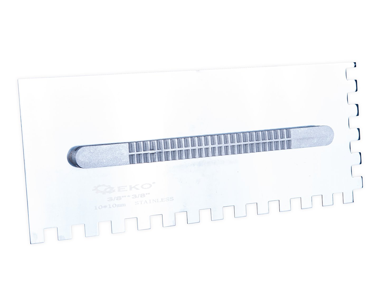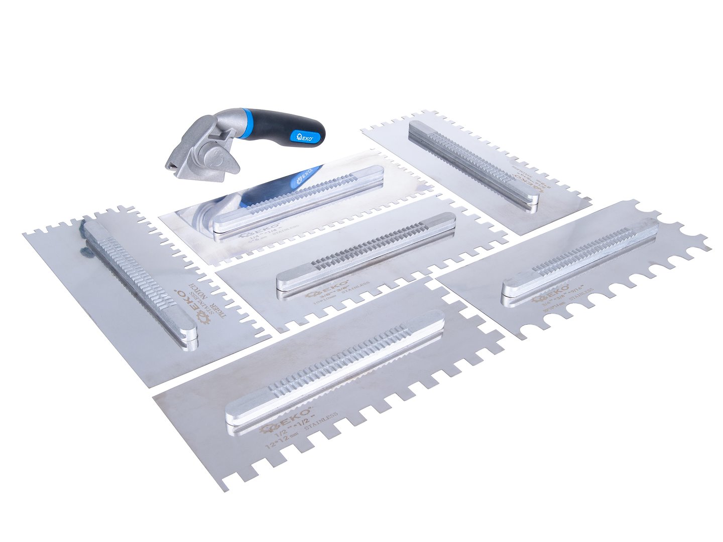 Minden simító rozsdamentes acélból készült, amely garantálja a korrózióállóságot és a tartósságot még a nedvességgel és a ragasztóval való gyakori érintkezés esetén is. A fogantyúk egy vezetősínre vannak szerelve, amely bárhová elhelyezhető, így a szerszámot a munkaszokásaihoz és ahhoz igazíthatja, hogy bal- vagy jobbkezes-e.