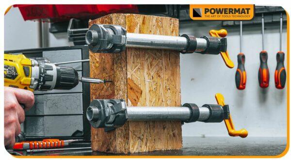 A csőbilincs, 4 db | PM-SSR-50TN egy univerzális szorítószerszám asztalos munkákhoz, amely lehetővé teszi az anyagok hatékony összenyomását csövek segítségével. A csőbilincsek lehetővé teszik bármilyen hosszúságú szerkezetek létrehozását, amelyet csak a 3/4″-os cső hossza korlátoz. Ez a megoldás teljes szabadságot biztosít a projekthez való alkalmazkodáshoz.