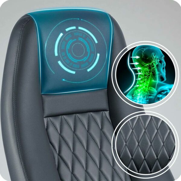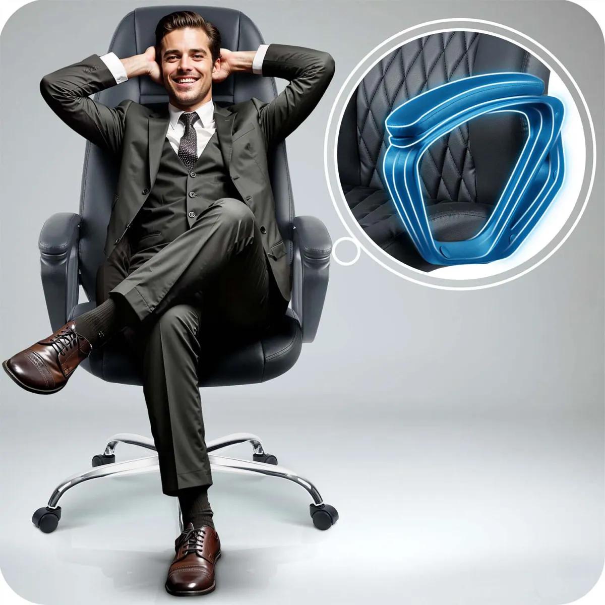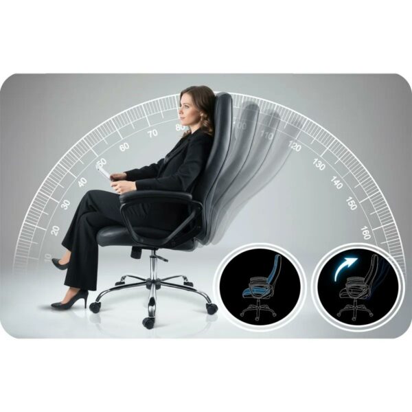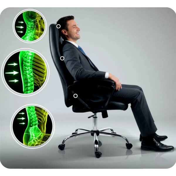 A szék széles háttámla dőlésszöget kínál, így bármikor válthat munkahelyzetből kényelmes pihenőhelyzetbe. A kontúrozott deréktámasz segít fenntartani az ergonomikus és biztonságos testhelyzetet. A kontúrozott fejtámla egyenletesen osztja el a nyomást, tehermentesíti az izmokat és megelőzi a nyakfájást. A kiváló minőségű krómacél váz kivételes stabilitást és tartósságot biztosít, az elegáns felület pedig karc- és korrózióálló.