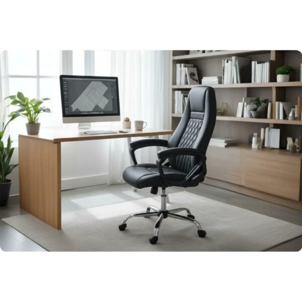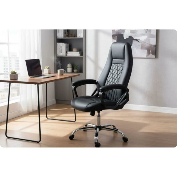 Ekobőrből készült irodai szék, fekete | A Sofotel ötvözi a kényelmet, az eleganciát és a robusztus konstrukciót, amely otthoni és professzionális munkakörnyezetbe egyaránt alkalmas. Röviden, ez a szék a kényelem, a funkcionalitás és a modern dizájn ideális kombinációját képviseli. Kiváló minőségű ekobőrrel borított, amely puha tapintású, mégis ellenáll a sérüléseknek és könnyen tisztítható.