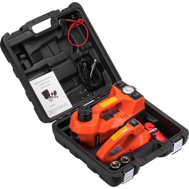 A KD1368 elektromos autóemelő lehetővé teszi, hogy gyorsan és egyszerűen megemelje járművét kerékcsere vagy szervizelés során. Ez egy komplett autóskészlet, amely elektromos hidraulikus emelőt, zseblámpát, nyomásmérőt, automata kerékkulcsot és beépített kompresszort tartalmaz. Ideális megoldás azoknak a vezetőknek, akik bármilyen közlekedési helyzetre fel szeretnének készülni – a kerékcserétől a kisebb javításokig.
