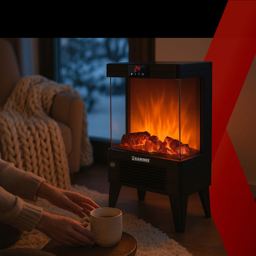 Az Embego elektromos fűtőtest, 2000W, fekete | Kaminer lánghatású változata melegséget és dekoratív vizuális elemet visz otthonába. Túlmelegedés elleni védelemmel és hőkioldóval rendelkezik, ami teljes körű védelmet jelent minden körülmények között – használhatja anélkül, hogy aggódnia kellene családtagjai biztonsága miatt.