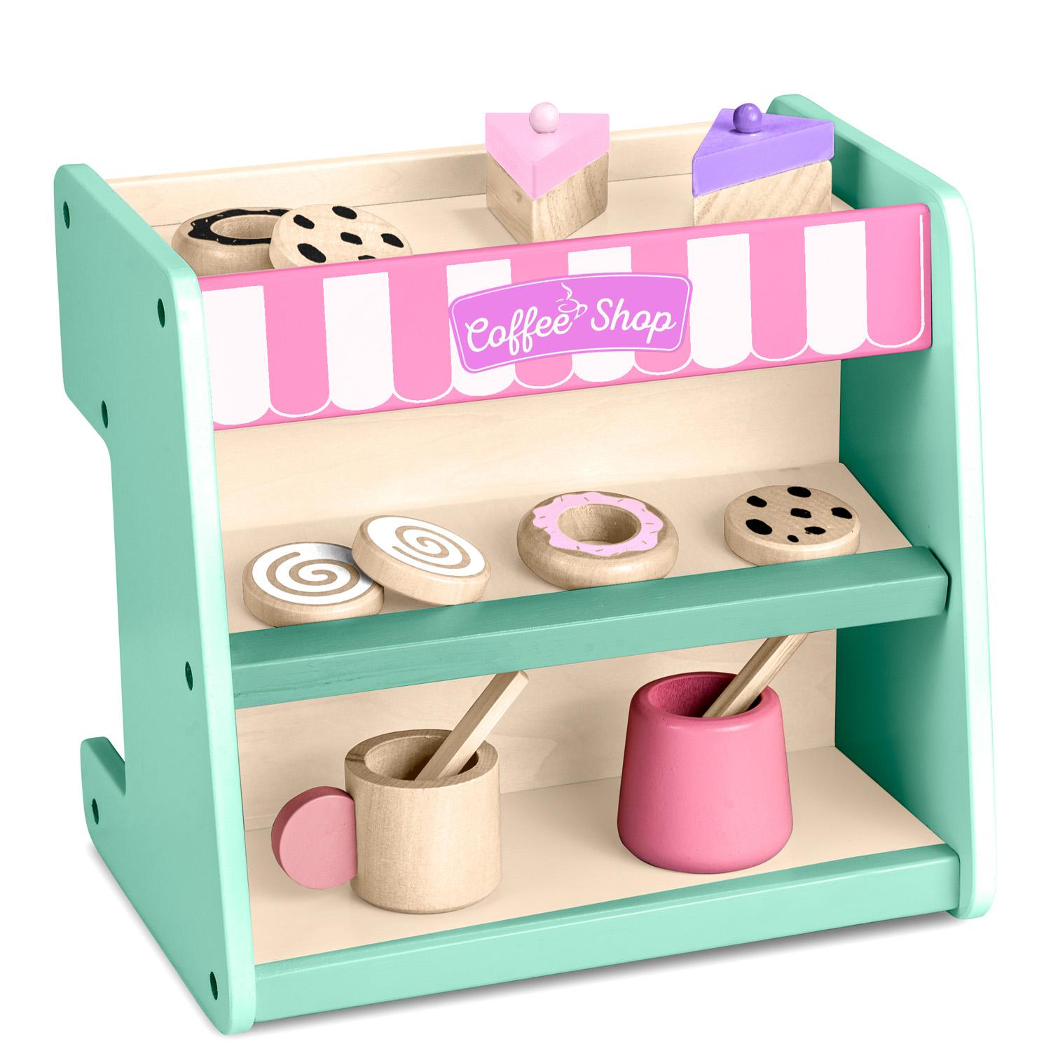 Fa Cukrászda Kávéfőzővel, Menta | A Ricokids egy kis kávézót és egy cukrászdát ötvöz egyetlen stílusos szettben, tele részletekkel, amelyek fejlesztik a kreativitást. A körülbelül 26 × 18,5 × 24 cm-es méretek megkönnyítik a tárolást a gyermek szobájában, és más szobákba vagy útközben is könnyen hordozható. A játék természetes anyagokból (fa) készült, és tanúsított, nem mérgező festékekkel kezelték, ami növeli a biztonságát és tartósságát.