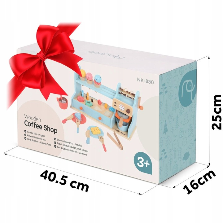 A Nukido fa kávézó gyerekeknek egy interaktív játék realisztikus elemekkel, amely támogatja a kreatív játékot és a szociális készségek fejlesztését. A játék lehetővé teszi a gyerekek számára, hogy pincérként játsszanak egy kávézóban vagy fagylaltozóban, és így fejlesszék képzelőerejüket a szerepjáték során. A fa kialakításnak és a gondos kidolgozásnak köszönhetően a játék masszív, stabil és egyben biztonságos a gyermekek kezében.