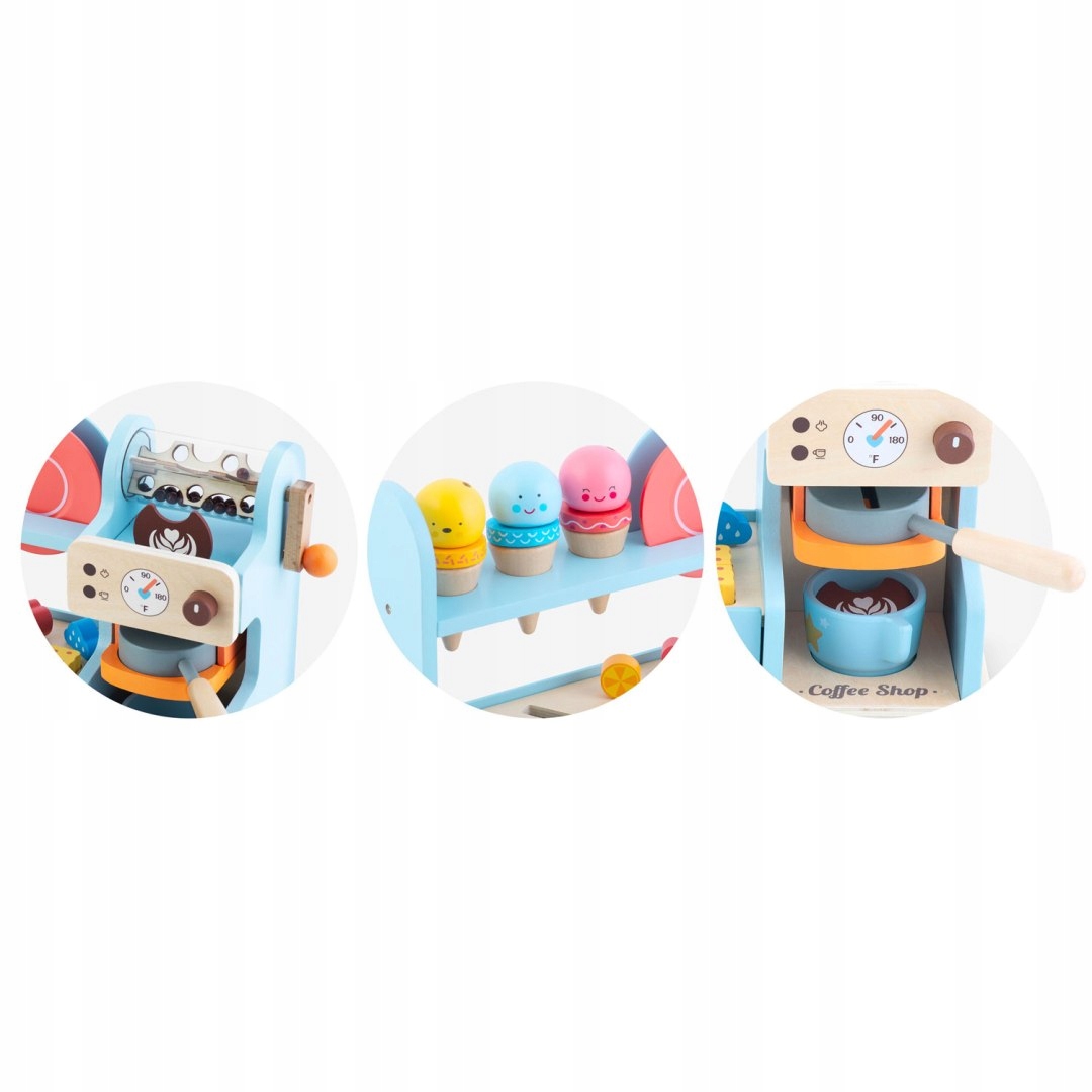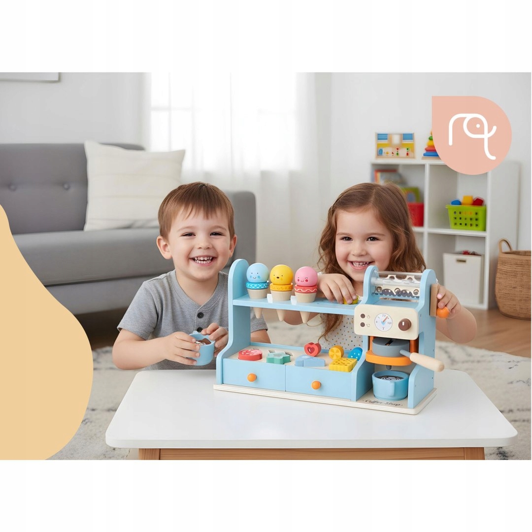A gazdag kiegészítők támogatják a kreatív játékot, a finom motoros készségek, a szociális készségek és a gyermekek közötti kommunikáció fejlesztését. A kávézó hosszú órákon át tartó szórakozást kínál, amelynek során a gyerekek természetes módon tanulják meg az együttműködés, az ügyfélszolgálat és a szerepjáték alapelveit. Univerzális kialakításának köszönhetően alkalmas mind gyerekszobába, mind játszósarokba, és különböző korú gyermekeket fog elragadtatni.