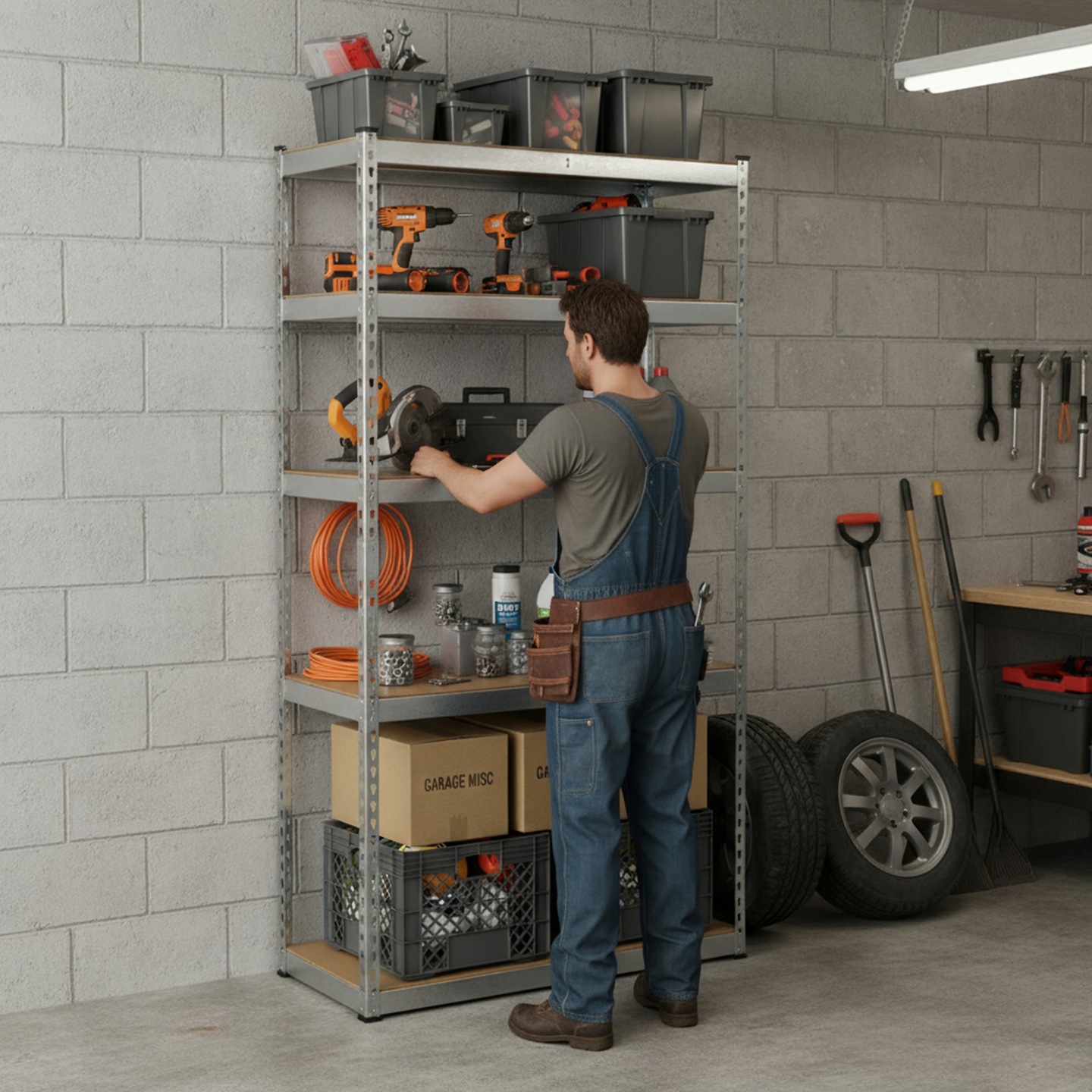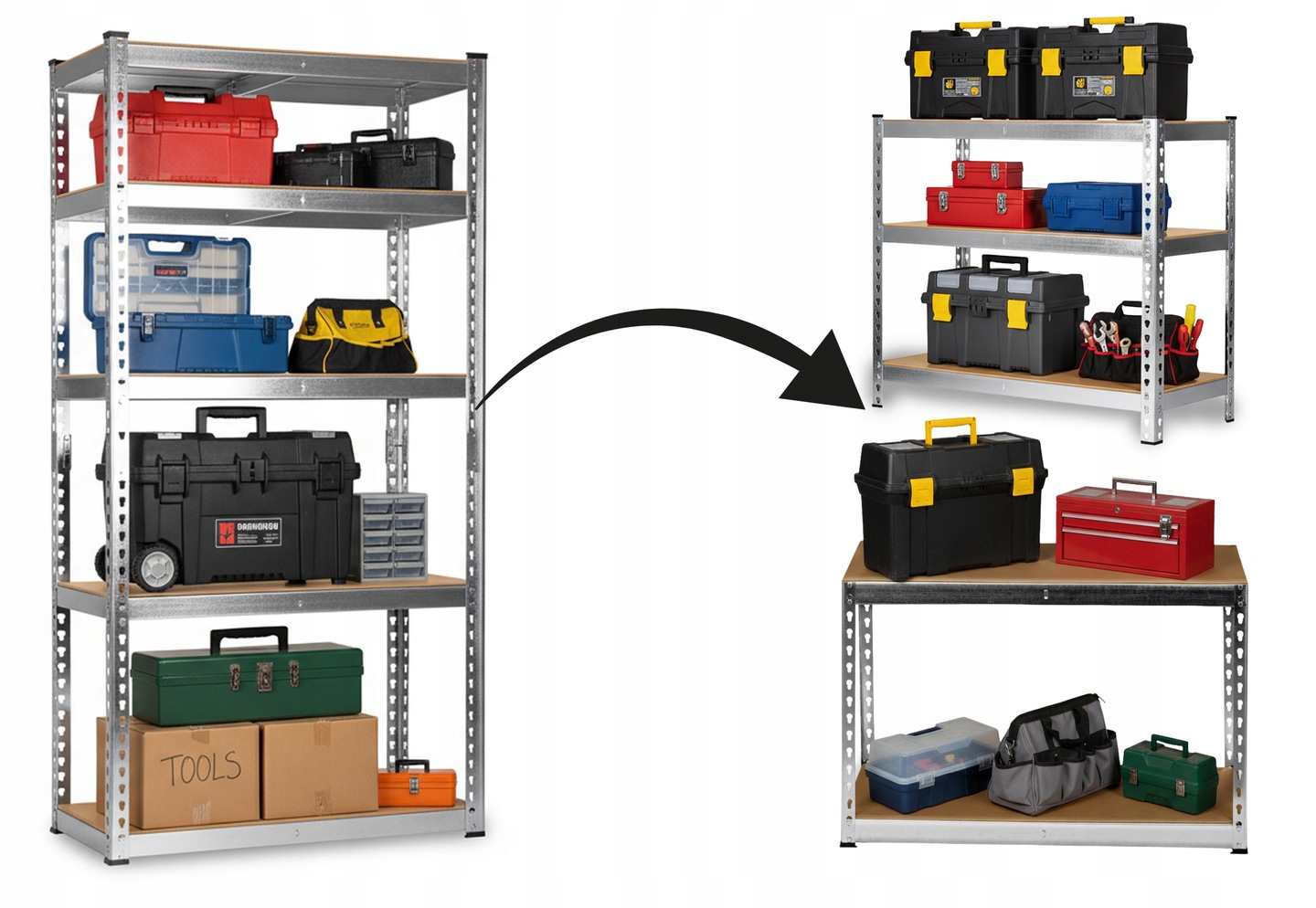 Kevés helyet foglal, de a polcoknak köszönhetően sok tárolóhelyet kínál. Az állvány 5 polcból áll, amelyekre termékeket, dobozokat vagy berendezéseket helyezhet el, polconként maximum 265 kg teherbírással. Ennek az állványnak egy másik előnye, hogy két kisebb egységre osztható.