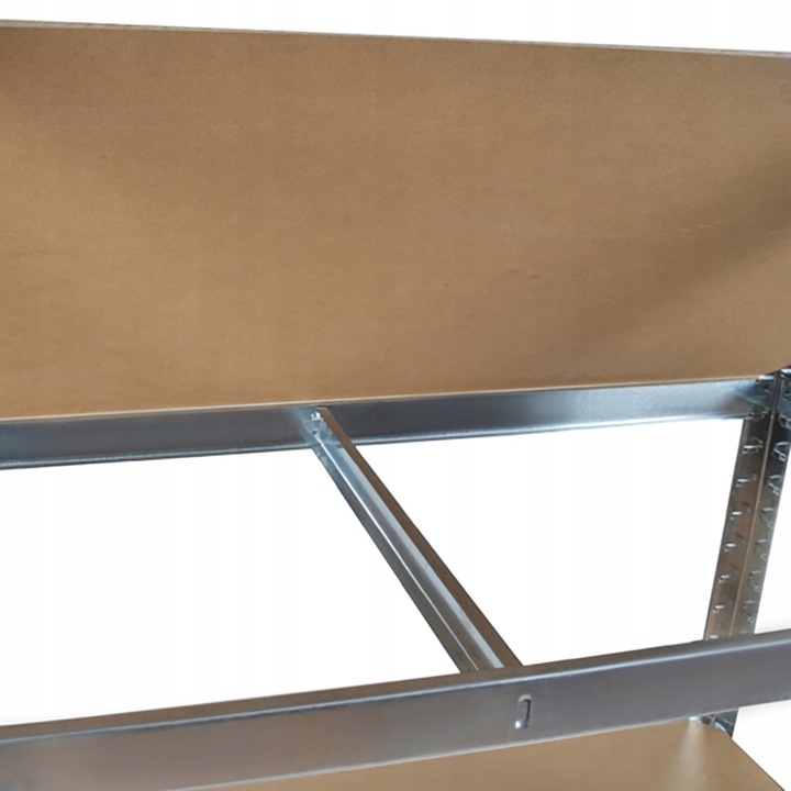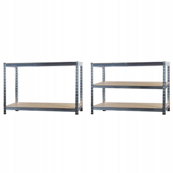 Minden állvány tartalmaz egy merevítő rudat, amely biztosítja a stabilitást és az egyenletes teherelosztást. A gyártó a lábak teljes hosszában rögzítőfuratokat helyezett el, így a polcok magassága könnyen és rugalmasan állítható igény szerint. Ezenkívül az állvány két részből álló lábakkal rendelkezik, ami azt jelenti, hogy könnyen átalakítható praktikus munkapaddá.