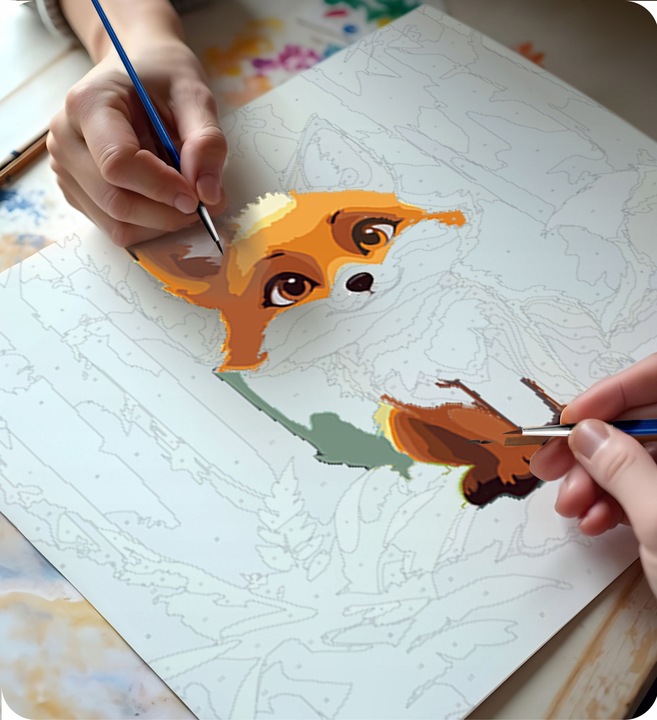 A Fess számok szerint, 40x50cm, róka | Massido egy olyan készlet, amely lehetővé teszi, hogy ellazulj, miközben színekkel töltöd meg a dobozokat és elkészíted saját műalkotásodat. A vidám, színes minta nagyszerű választás mind a nagy, mind a kis művészek számára, akik szeretnék felfedezni a festészet örömét. Ideális a kreatív időtöltéshez a családdal, és egy egyedi, színekkel teli műalkotás létrehozásához!