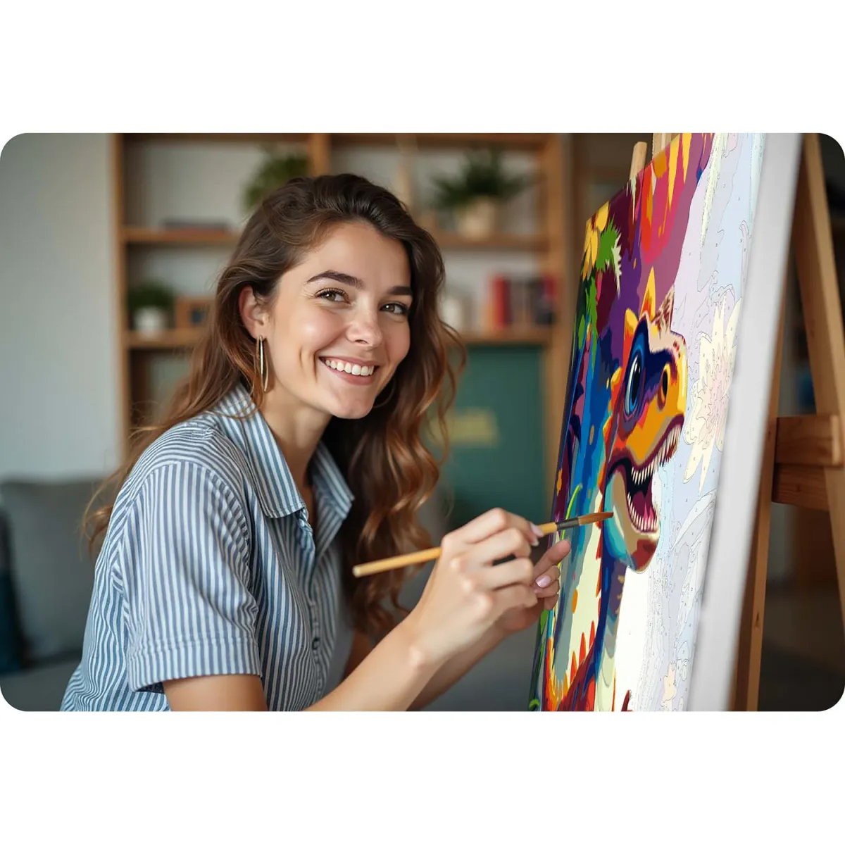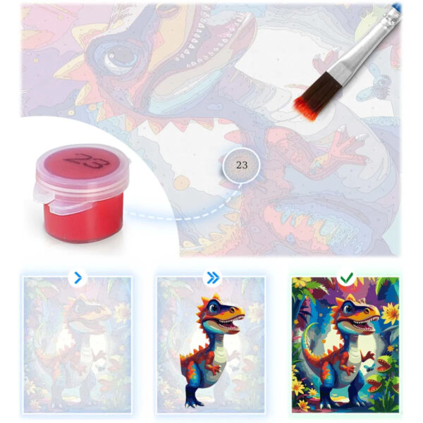 Festés számok szerint, 40x50cm, dinoszaurusz | A Massido egy olyan készlet, amely lehetővé teszi, hogy ellazulj, miközben színekkel töltöd meg a dobozokat és elkészíted saját műalkotásodat. A vidám, színes minta nagyszerű választás mind a nagy, mind a kis művészek számára, akik szeretnék felfedezni a festés örömét. Ideális a kreatív időtöltéshez a családdal és egy egyedi, színekkel teli műalkotás létrehozásához!