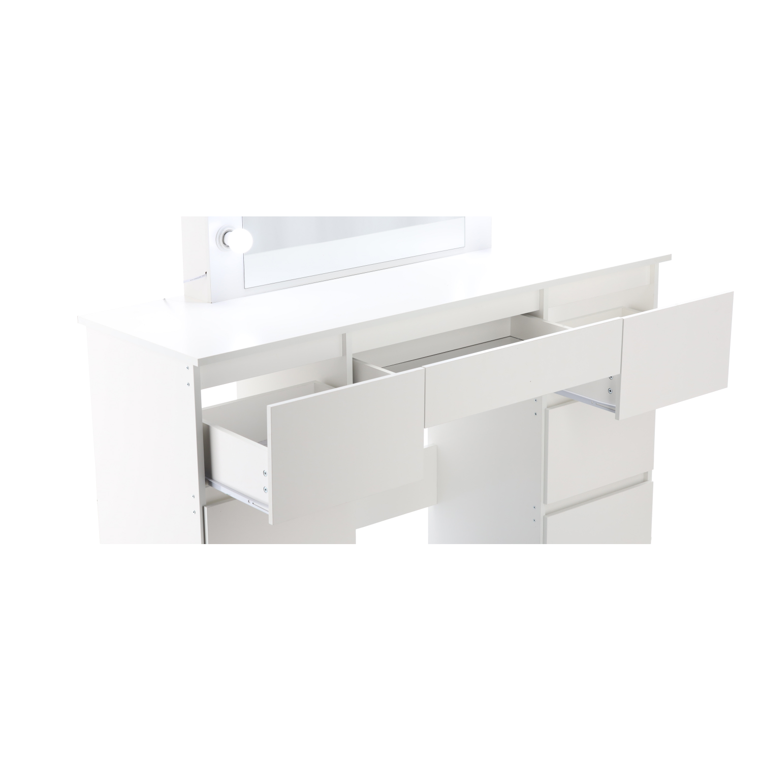 Fésülködőasztal LED világítással, 7 fiókkal | fehér