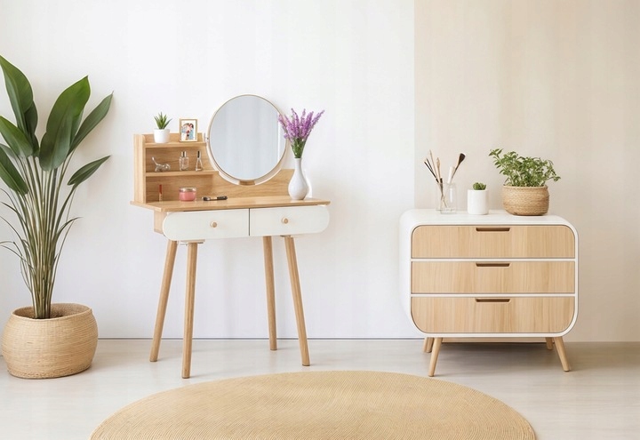 Az asztal kiváló minőségű fából és MDF anyagból készült, így erős, stabil és könnyen karbantartható. A munkafelület alatt egy fiók vagy több rekesz található, amelyek lehetővé teszik a kozmetikumok, kiegészítők és egyéb apróságok áttekinthető tárolását. Időtlen kialakításának és univerzális fehér felületének köszönhetően könnyen kombinálható különféle belső stílusokkal – a moderntől a vintage-ig.
