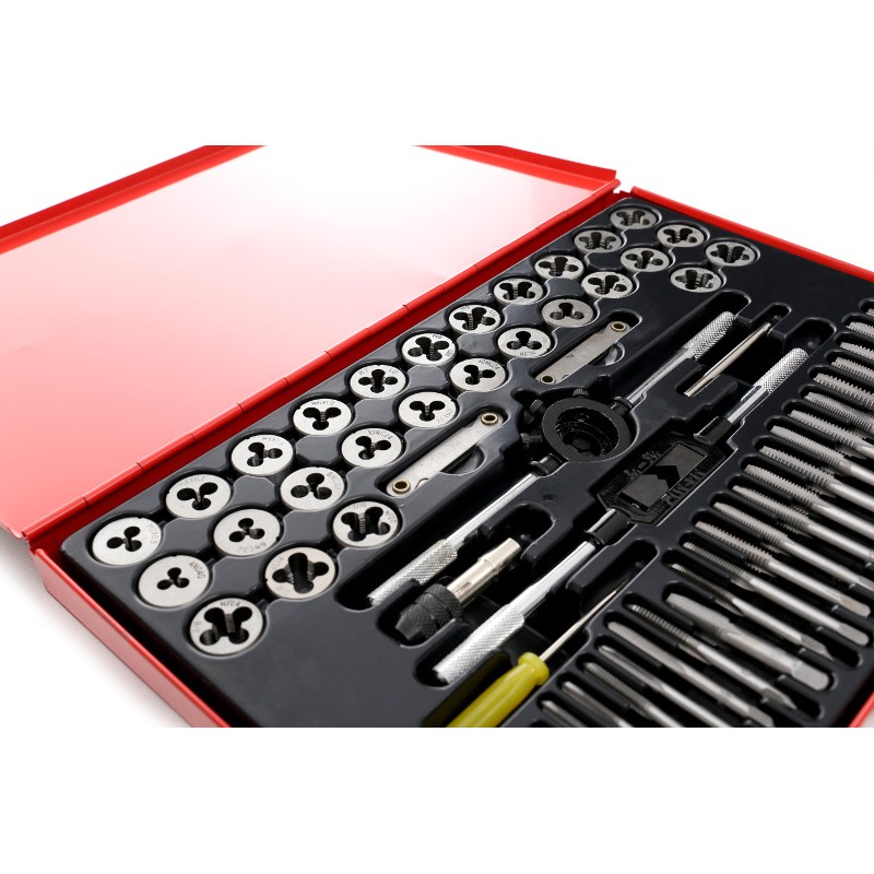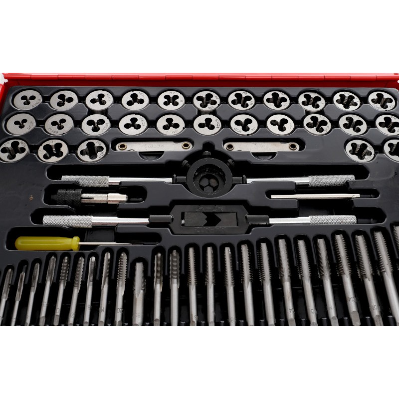 A fúrók és anyák, 60 db | KD10251 megbízható megoldást kínálnak menetek létrehozására és javítására különféle gépészeti és műhelyi munkákban. A legmagasabb minőségű edzett acélból készültek, így bármilyen műhelyben vagy garázsban bizonyítják hatékonyságukat. A készlet mindenféle menetes kötés javítására használható a legtöbb anyagban.