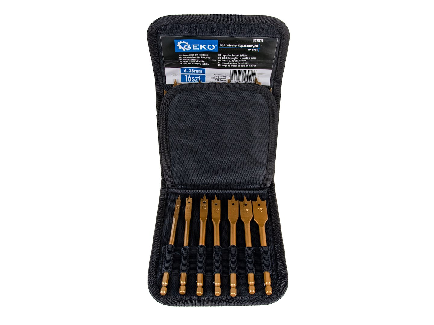 A fúrókészlet kofferben, 16 részes, 6-38 mm | A GEKO az ideális megoldás azok számára, akik értékelik a sokoldalúságot, a minőséget és a precizitást munkájuk során. A széles méretválasztéknak (6 mm-től 38 mm-ig) köszönhetően ezek a szerszámok ideálisak fa, bútorlap, műanyag, valamint gipszkarton és pórusbeton megmunkálásához. A fúrók kiváló minőségű edzett szénacélból készülnek, rendkívül tartósak és ellenállnak a sérüléseknek, ami hosszú élettartamot és megbízhatóságot garantál minden körülmények között.