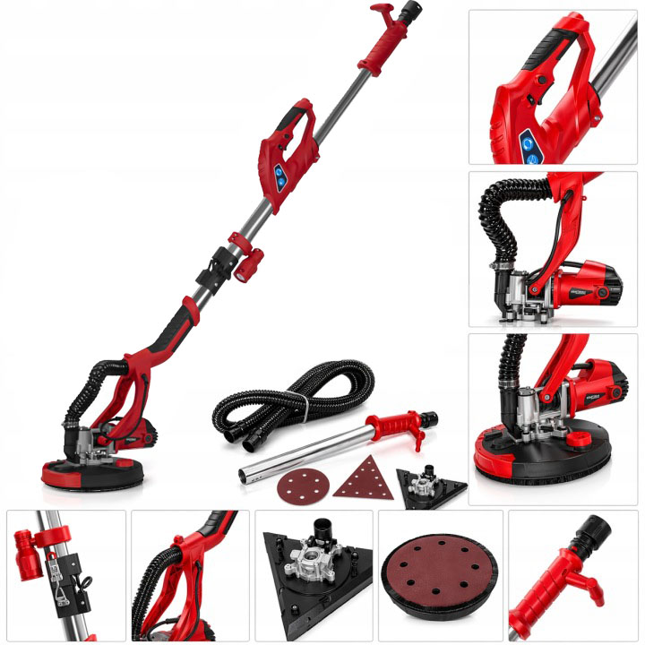 A készülék lehetővé teszi a szívóerő szabályozását az aktuális igényeknek megfelelően, és porelszívó rendszert használ, amely korlátozza a por örvénylését munka közben. A mellékelt, háton akasztható porzsák a szívótömlővel együtt javítja a munkakörülményeket. A beépített LED-lámpa megkönnyíti a munkát gyenge fényviszonyok mellett és növeli a csiszolás pontosságát, míg az ergonomikus, csúszásmentes fogantyú szilárd és biztonságos fogást biztosít.