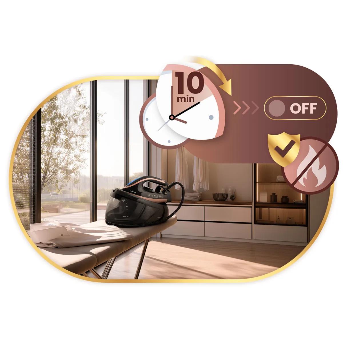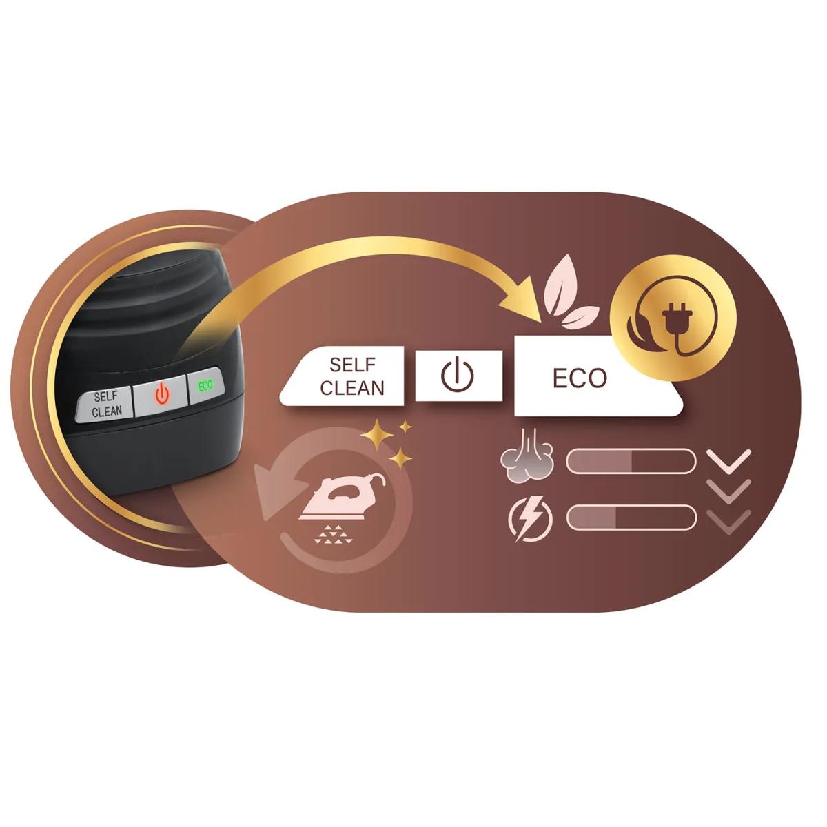1,5 literes víztartállyal rendelkezik, amely lehetővé teszi a hosszabb, megszakítás nélküli vasalást gyakori utántöltés nélkül. A kerámia talpú és csempeprofilú vasalótalppal optimális gőzelosztást és kiváló siklási tulajdonságokat biztosít – kényes anyagokkal és vastagabb anyagokkal is megbirkózik. Gőzölős üzemmódban a teljesítmény akár 100 g/percet is elérhet, folyamatos 45 g/löket teljesítmény mellett.