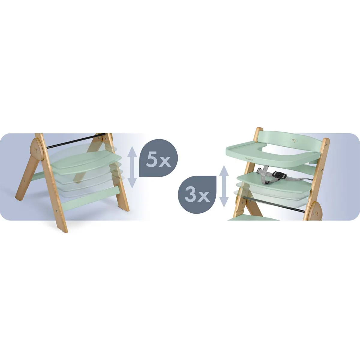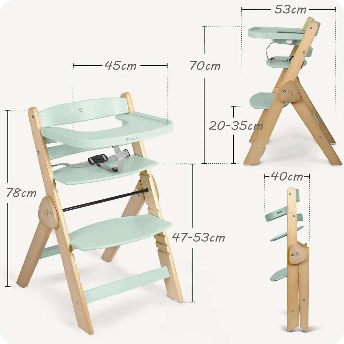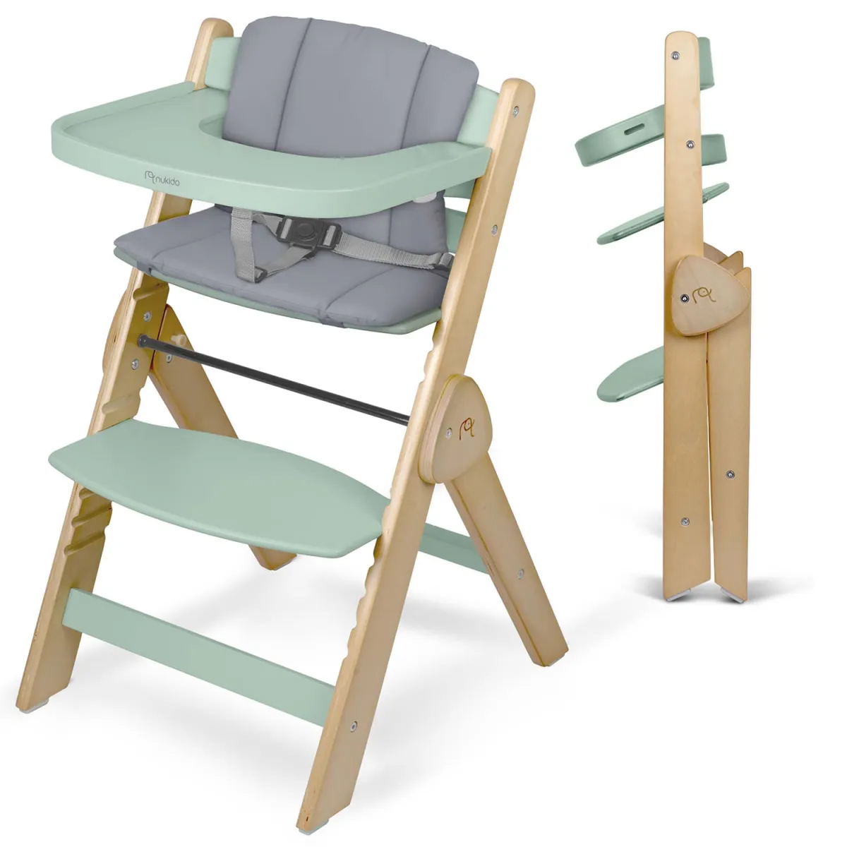 Gyerek étkezőszék Timo 2 az 1-ben, zöld | Nukido egy stabil és biztonságos etetőszék, amely kényelmes és önálló ülést biztosít az asztalnál. A speciális biztonsági öveknek és a kényelmes párnának köszönhetően biztonságos és kényelmes első székké válik gyermeke számára. Ideális az első étkezésekhez és a közös asztali pillanatokhoz. Ha gyermeke nagyobb lesz, egyszerűen vegye le a tálcát, és állítsa be az ülés és a lábtartók magasságát.