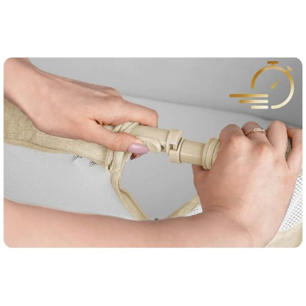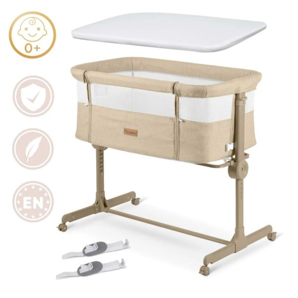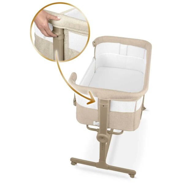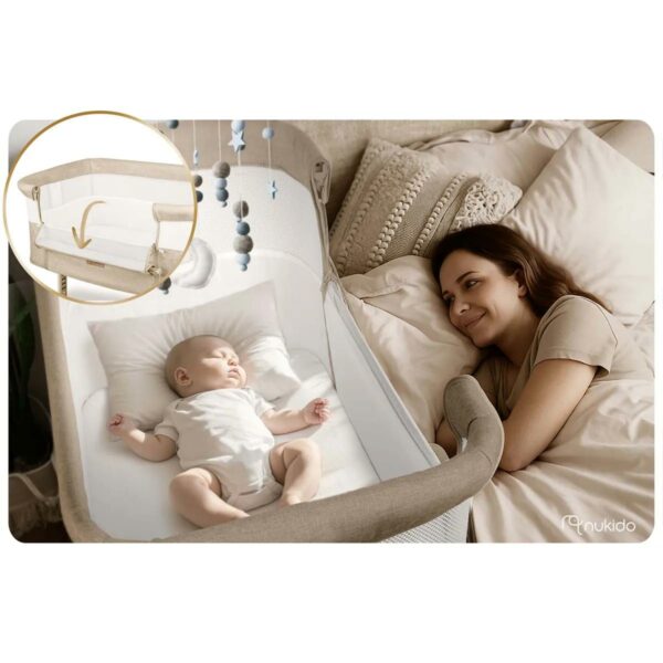 Gyerek utazóágy NK-243, összecsukható, bézs | A kihúzható nyílással ellátott Nukido praktikus megoldást kínál a szülők és a babák számára úton. Könnyű és összecsukható kialakításának köszönhetően könnyen kezelhető és hordozható utazás közben. A magasság 7 fokozatban állítható, mindkét oldalról függetlenül, ami segít a kiságy matrac magasságához igazítani.