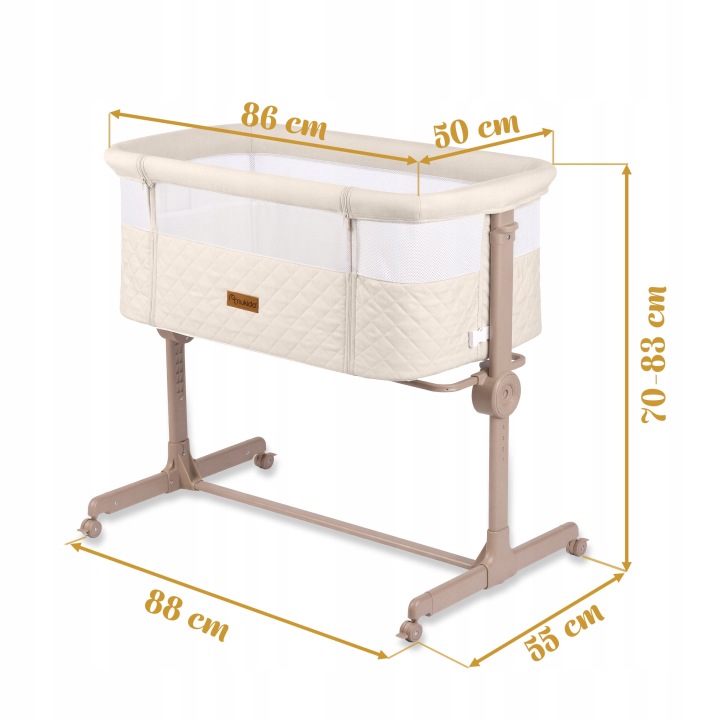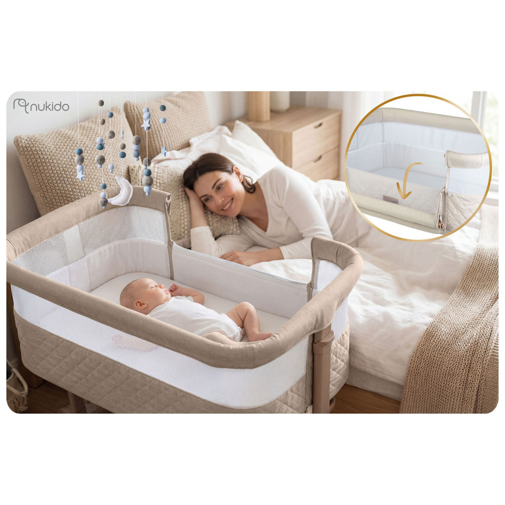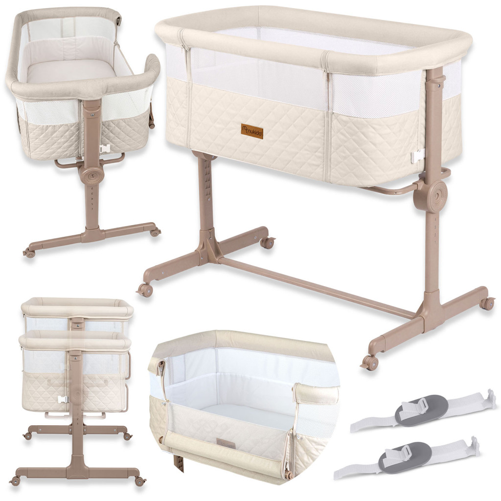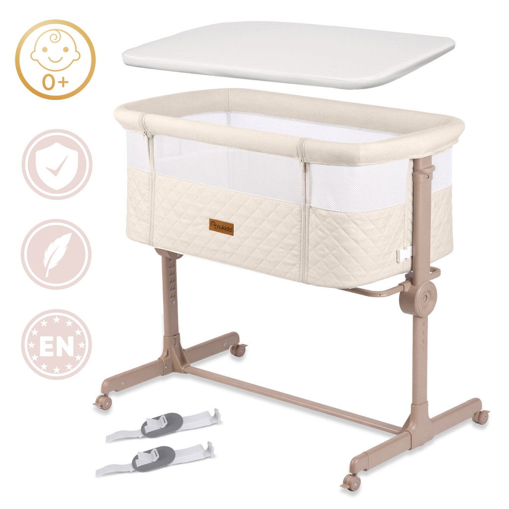 Gyerek utazóágy NK-243, összecsukható, krémszínű | Nukido kihúzható nyílással ellátott, praktikus megoldást kínál a szülők és a babák számára úton. Könnyűnek és összecsukhatónak tervezték, így könnyen kezelhető és hordozható utazás közben. A magasság 7 fokozatban állítható, mindkét oldalról függetlenül, ami segít a kiságy matrac magasságához igazítani.