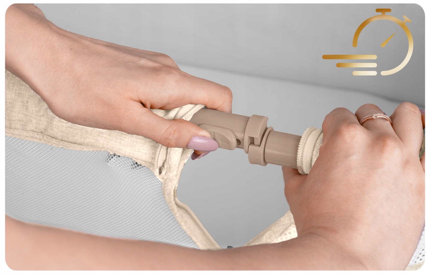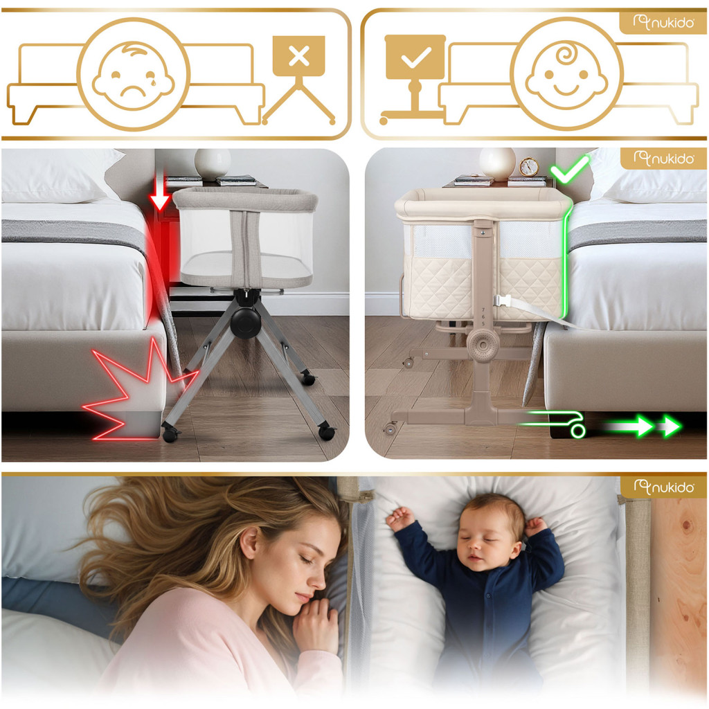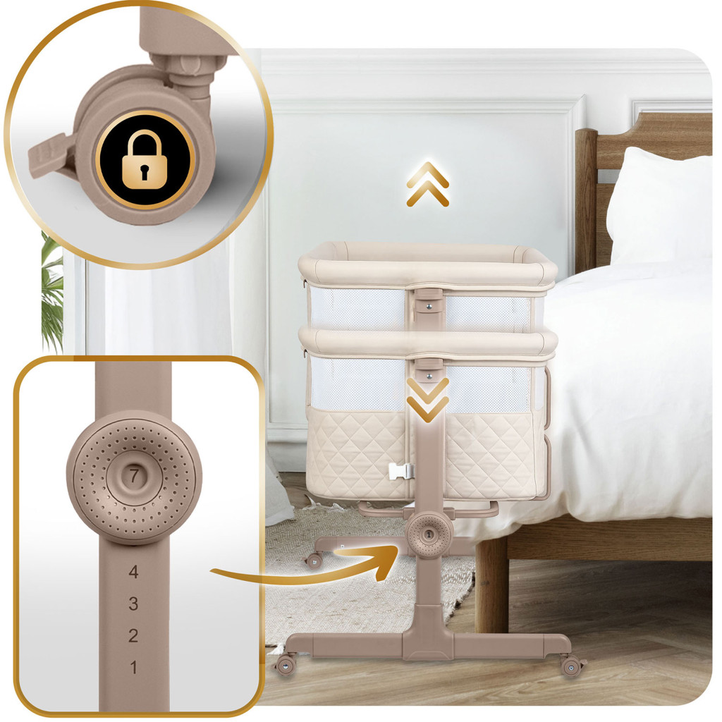 Gyerek utazóágy NK-243, összecsukható, krémszínű | Nukido kihúzható nyílással ellátott, praktikus megoldást kínál a szülők és a babák számára úton. Könnyűnek és összecsukhatónak tervezték, így könnyen kezelhető és hordozható utazás közben. A magasság 7 fokozatban állítható, mindkét oldalról függetlenül, ami segít a kiságy matrac magasságához igazítani.
