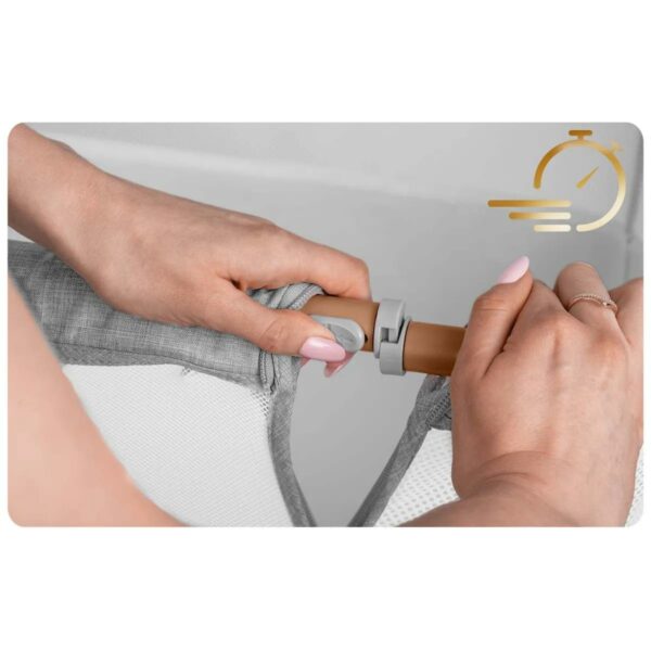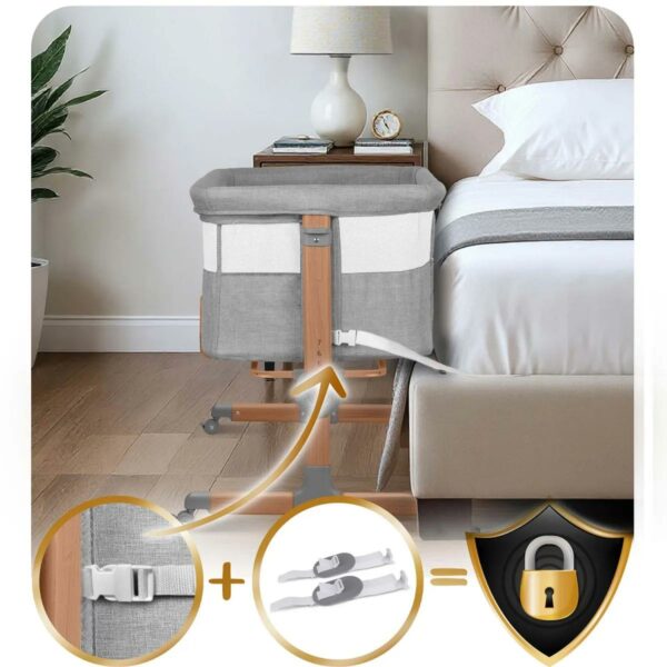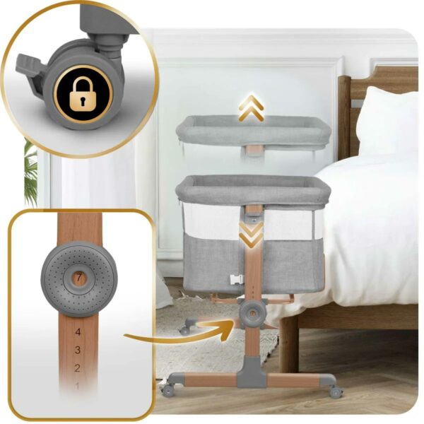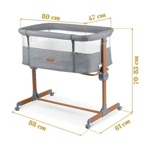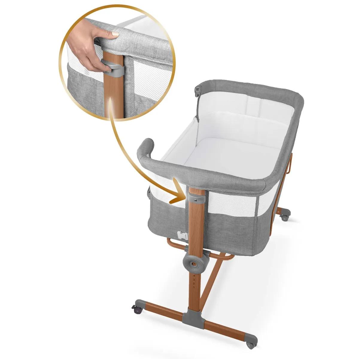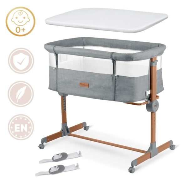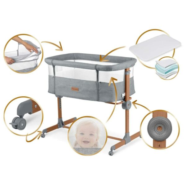 A stabil szerkezet biztonságot nyújt, míg a 4 fékezős kerék könnyed mozgást tesz lehetővé. Az oldalsó hozzáférés levehető és zárható, így a gyermek ne tudjon egyedül kiszállni, a huzatok és a szövetrészek pedig levehetők és moshatók, ami megkönnyíti a karbantartást. A csomag tartalmaz egy levehető huzatú matracot is, amely kényelmet biztosít a gyermek számára.