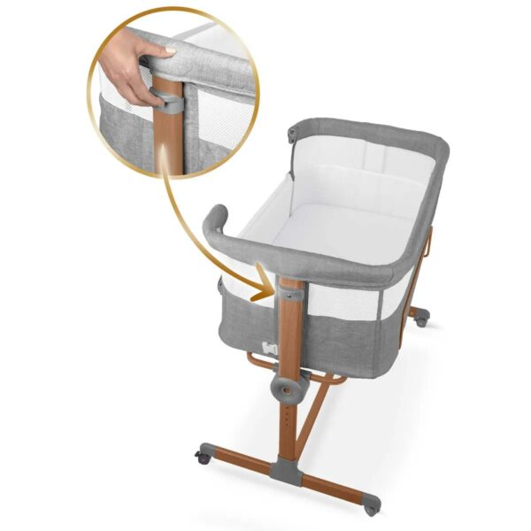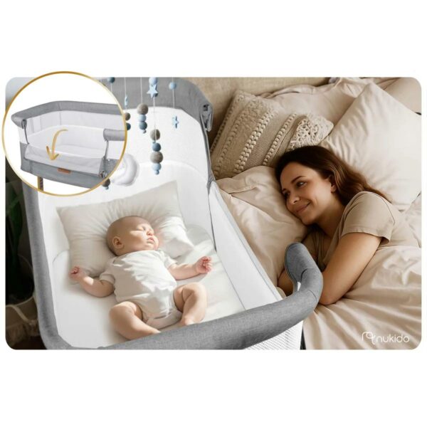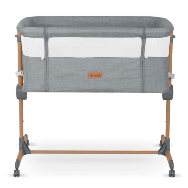 Gyerek utazóágy NK-243, összecsukható, világos szürke | A kihúzható nyílással ellátott Nukido praktikus megoldást kínál a szülők és a babák számára úton. Könnyűnek és összecsukhatónak tervezték, így könnyen kezelhető és hordozható utazás közben. A magasság 7 fokozatban állítható, mindkét oldalról függetlenül, ami segít a kiságy matrac magasságához igazítani.