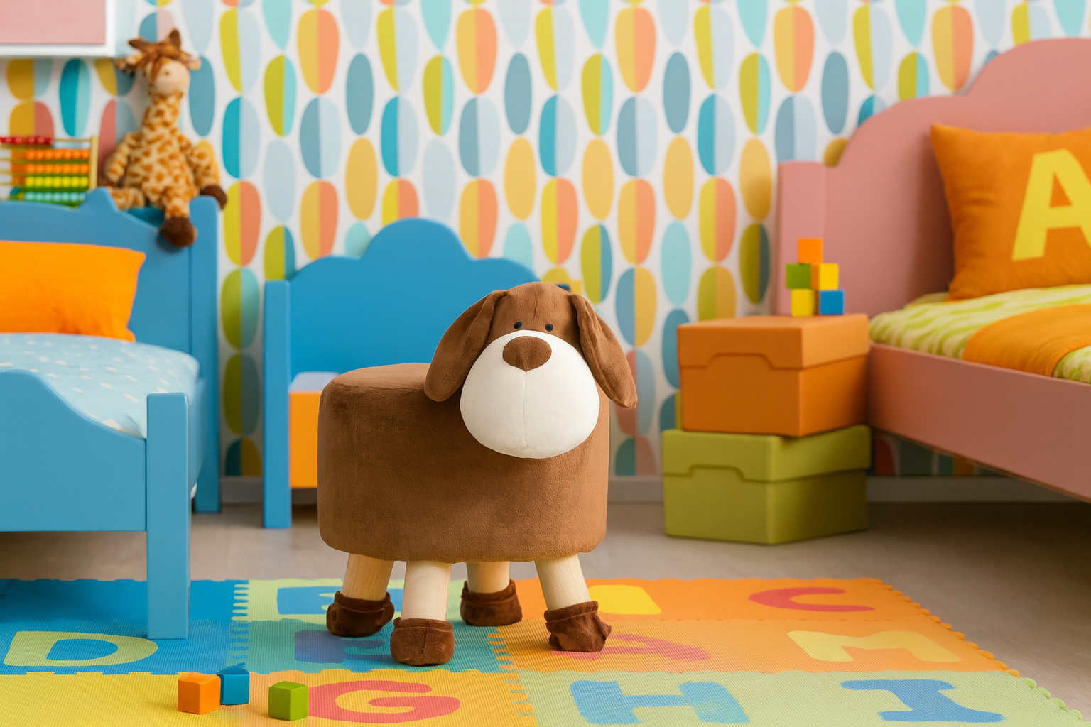 A gyerekzsámoly, 28x25cm | kutya egy eredeti kiegészítő, amely praktikus helyet kínál ülő- vagy pihenőhelyként, ideális a gyerekszobába. A zsámoly puha anyagokból készült, amelyek lehetővé teszik a kényelmes ülést, a belső töltet pedig stabil tartást biztosít. Kompakt méreteinek köszönhetően kisebb helyiségekben is kényelmesen elfér, ugyanakkor játékos és eredeti hangulatot kölcsönöz a szobának. A zsiráf ihlette dizájn gyerekeknek és felnőtteknek egyaránt tetszeni fog.
