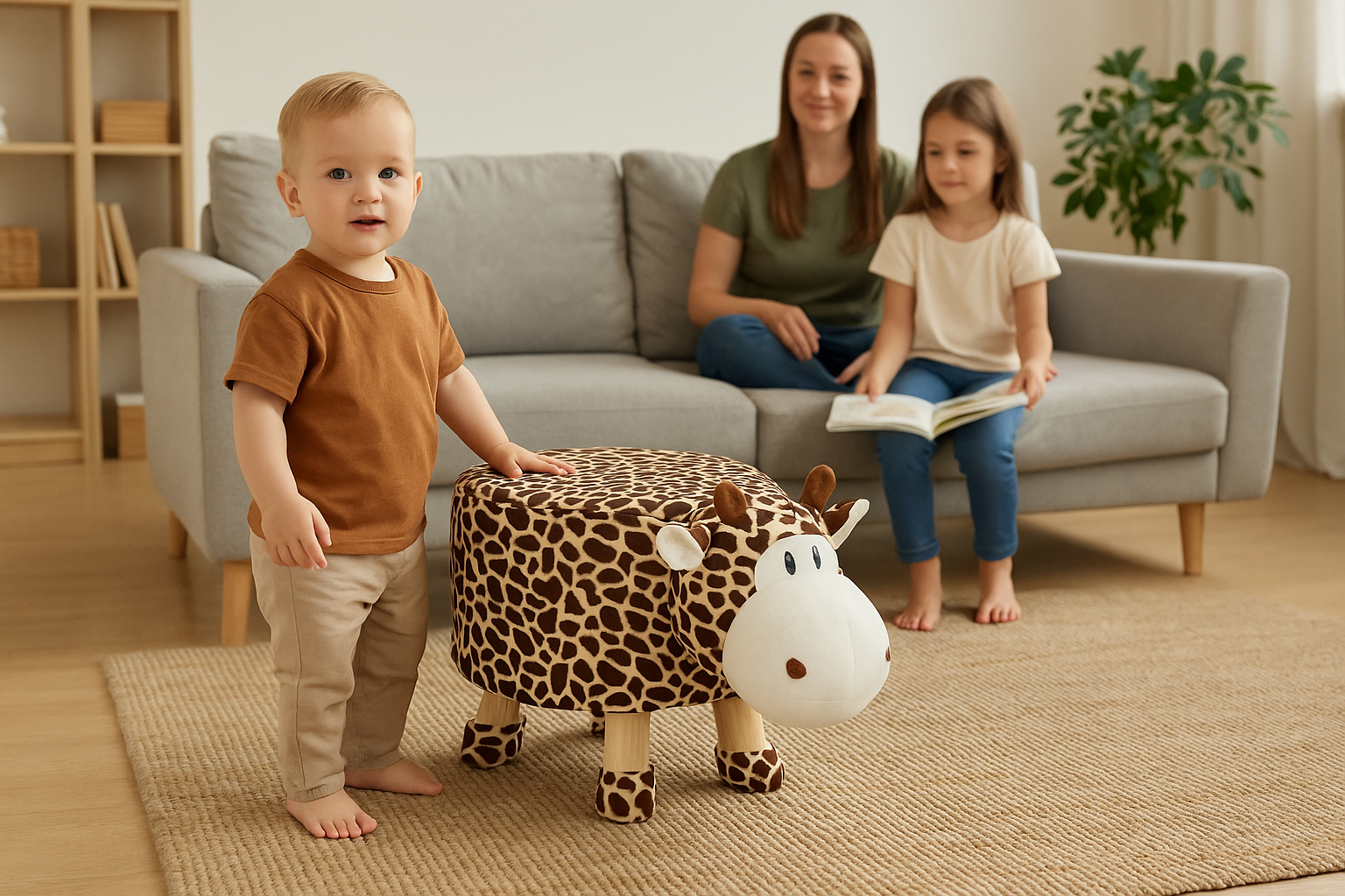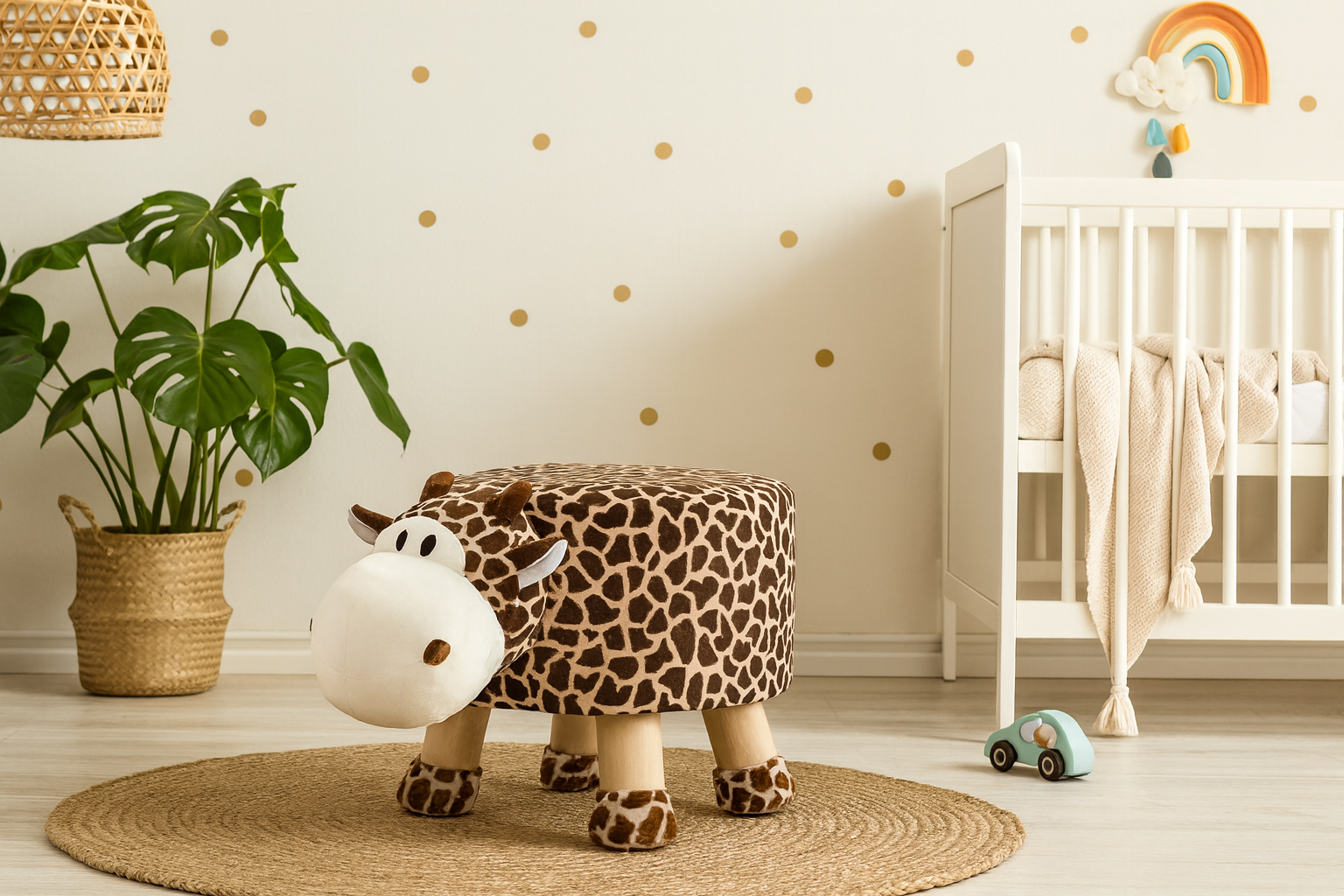 A gyerekzsámoly, 28x25cm | zsiráf egy eredeti kiegészítő, amely praktikus helyet kínál ülő- vagy pihenőhelynek, ideális a gyerekszobába. A zsámoly puha anyagokból készült, amelyek lehetővé teszik a kényelmes ülést, a belső töltet pedig stabil tartást biztosít. Kompakt méreteinek köszönhetően kisebb helyiségekben is kényelmesen elfér, ugyanakkor játékos és eredeti hangulatot kölcsönöz a szobának. A zsiráf ihlette dizájn gyerekeknek és felnőtteknek egyaránt tetszeni fog.