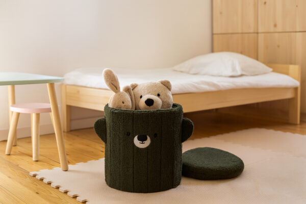 A gyerekzsámoly tárolóhellyel, 28x28x34cm | zöld ötvözi a kényelmes ülőhely és a tárolóhely funkcióját, így bármilyen helyiségbe illik. Kompakt, 28 × 28 × 34 cm-es méreteinek köszönhetően alkalmas nappaliba, hálószobába, előszobába vagy gyerekszobába, ahol nem foglal sok helyet.