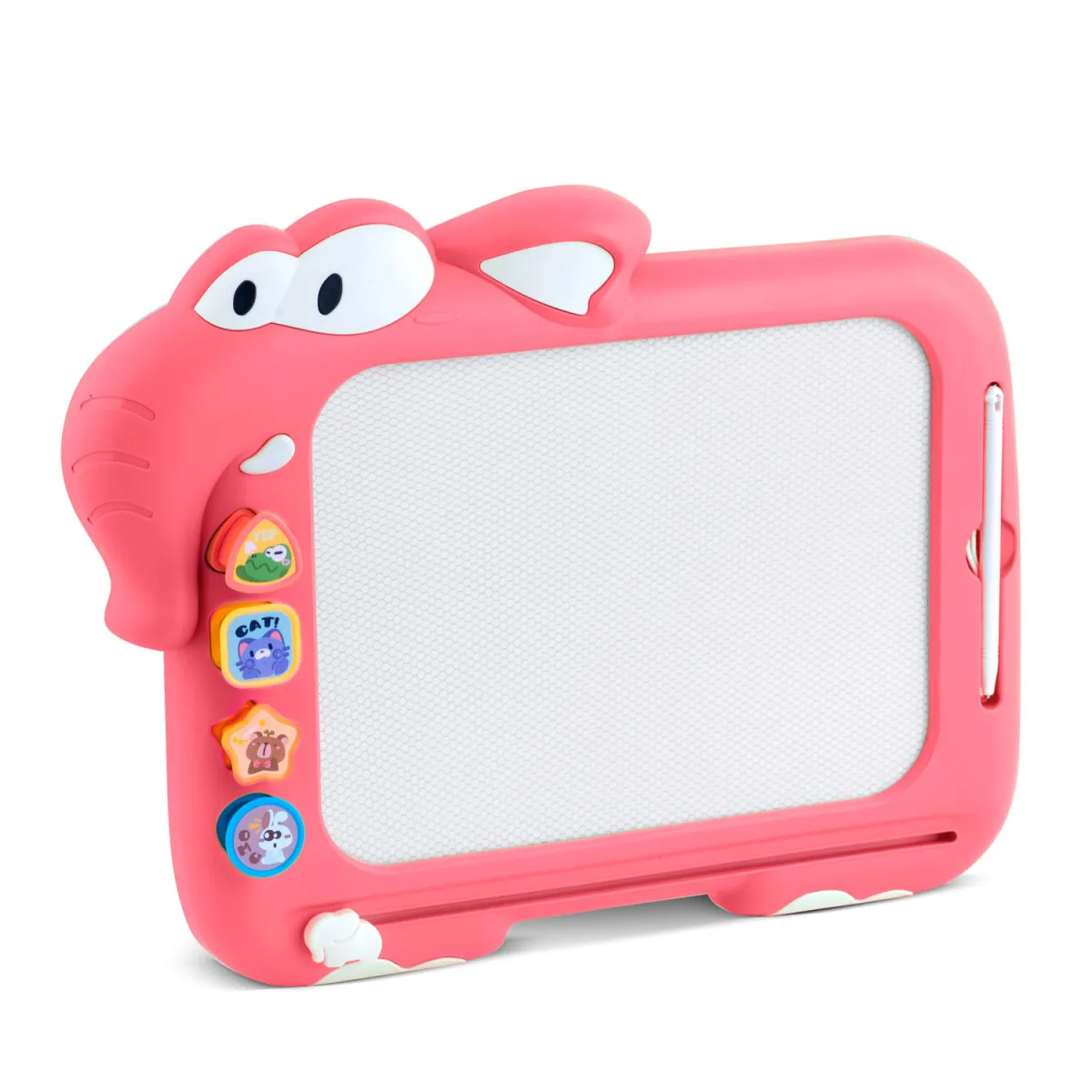 A tábla tömör műanyagból készült, ergonomikus tollal és mágneses bélyegzőkkel, támogatja a finommotoros készségek, a kreativitás és a térbeli érzékelés fejlődését a gyermekeknél körülbelül 3 éves kortól. A játék ideális többek között autóval vagy repülővel való utazáshoz.