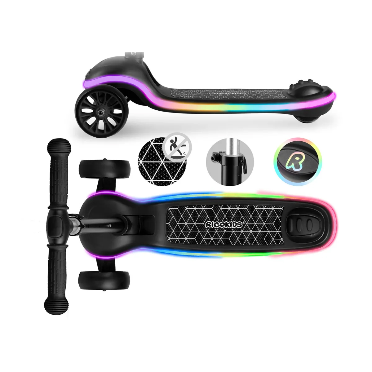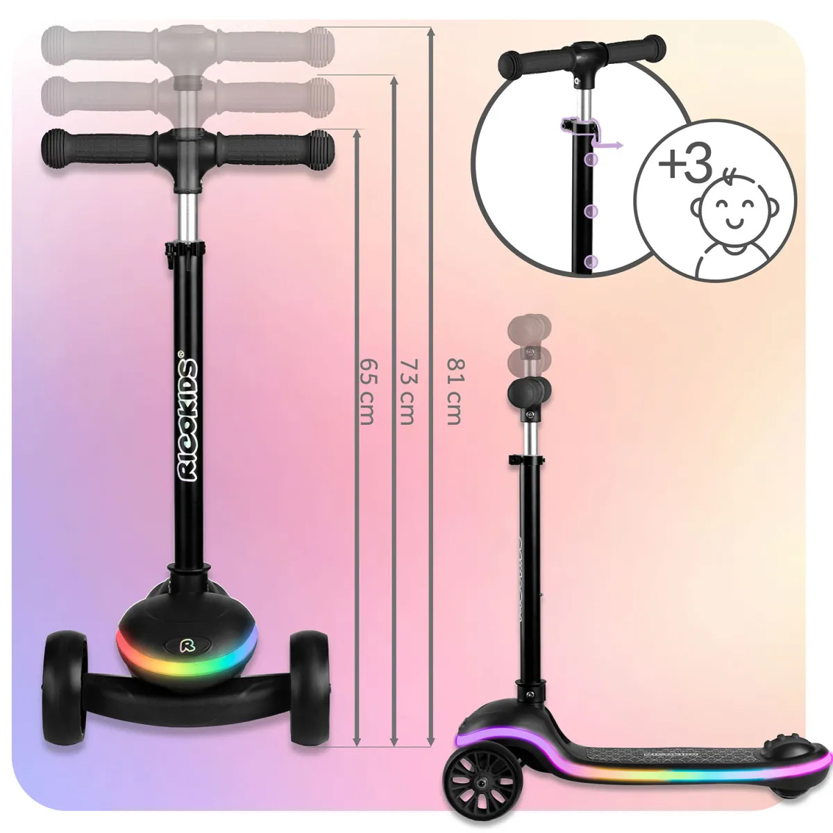 Háromkerekű roller, fekete, LED | Ricokids Leddi