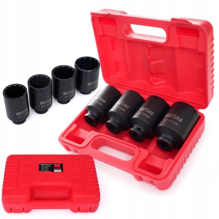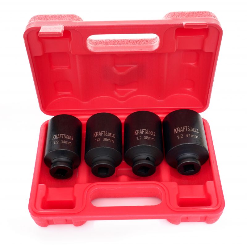Hatszögletű ütőkulcsok, 1/2″, 4 db | KD11754 egy professzionális dugókulcskészlet, amelyet csavarok és anyák meglazítására és meghúzására terveztek. A hatszögletű profil biztosítja a csavarfejen való biztonságos illeszkedést, a hatékony nyomatékátvitelt és az élkárosodás kisebb kockázatát intenzív használat során.