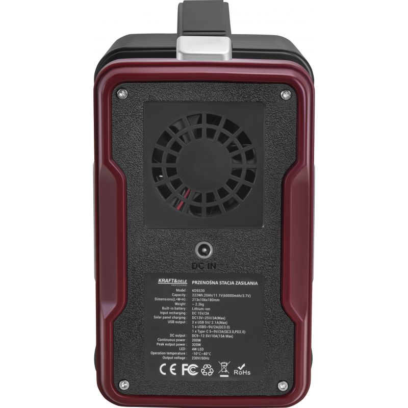 A hordozható töltő, 222Wh/11.1V | KD5530 minden körülmények között biztosítja az energiafüggetlenséget – úton, kempingezéskor vagy vészhelyzetben. Kompakt kialakításának és kényelmes fogantyújának köszönhetően a készüléket könnyedén magával viheti bárhová, ahol korlátozott az áramhoz való hozzáférés.