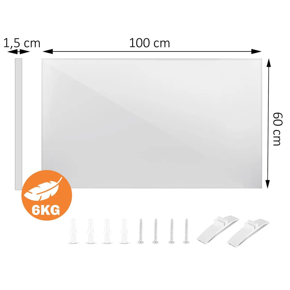 A panel dupla védelemmel rendelkezik a túlmelegedés ellen, ami garantálja a biztonságos működést. A kialakítás PET, PP, alumínium és acél anyagok kombinációját használja, ami hozzájárul a készülék robusztusságához és hosszabb élettartamához. További előny az IPX4 védelem, amelynek köszönhetően a panel ellenáll a véletlen vízcseppeknek, ami lehetővé teszi a magasabb páratartalmú helyiségekben (pl. fürdőszobákban) való használatát is – természetesen a biztonsági utasítások betartása mellett. A tápkábel 1,5 méter hosszú, ami megfelelő rugalmasságot biztosít a telepítés során.