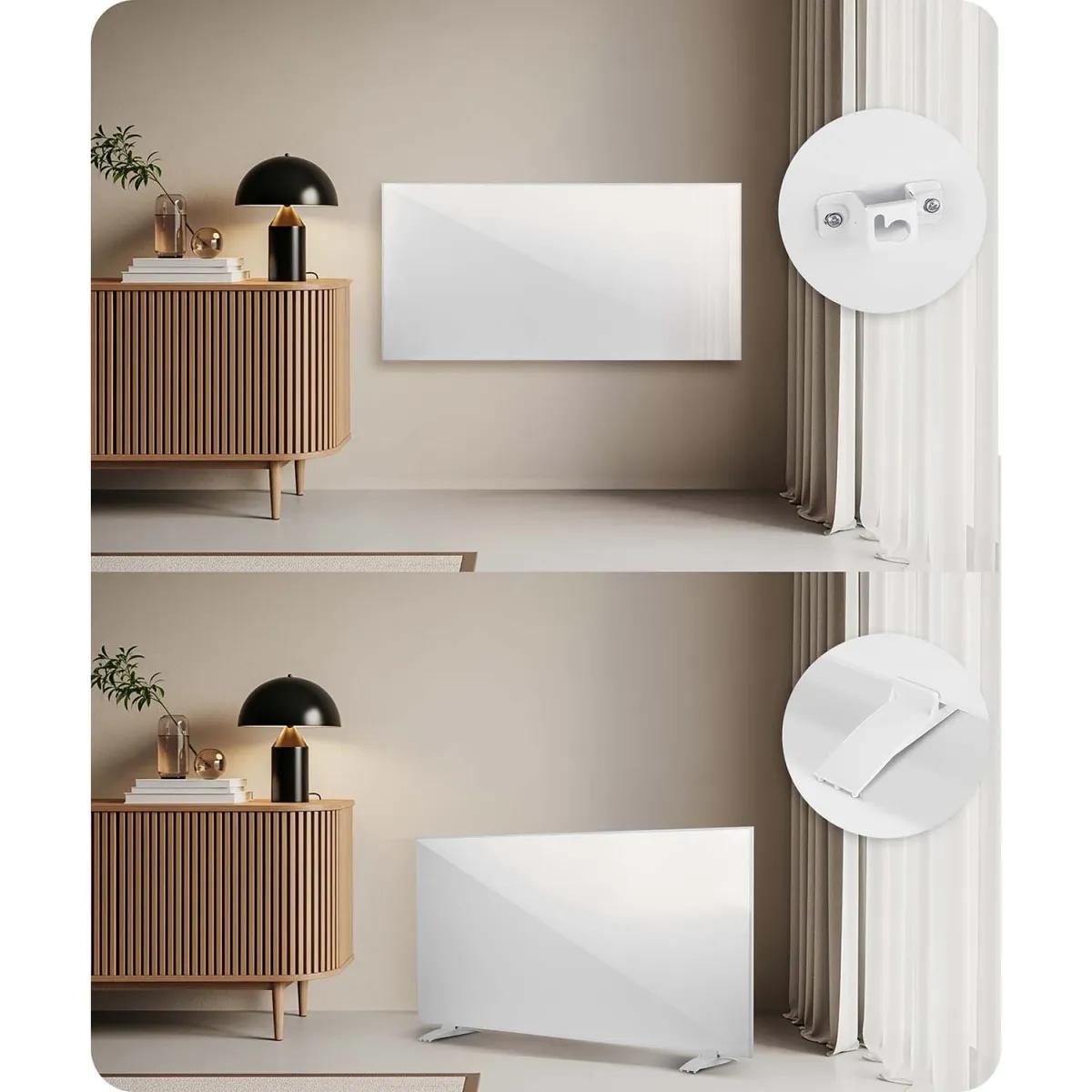 3 az 1-ben kialakítású – falra, mennyezetre szerelhető, vagy a mellékelt lábak segítségével önállóan is használható, így különböző típusú belső terekhez illeszthető. Az anyagrétegek között PET, PP, alumínium és acél található. A panel IPX4 besorolású, amely garantálja a vízállóságot – természetesen magasabb páratartalmú helyiségekbe (pl. fürdőszobák) is alkalmas, a biztonsági előírások betartása mellett. A tápkábel hossza 1,5 m.