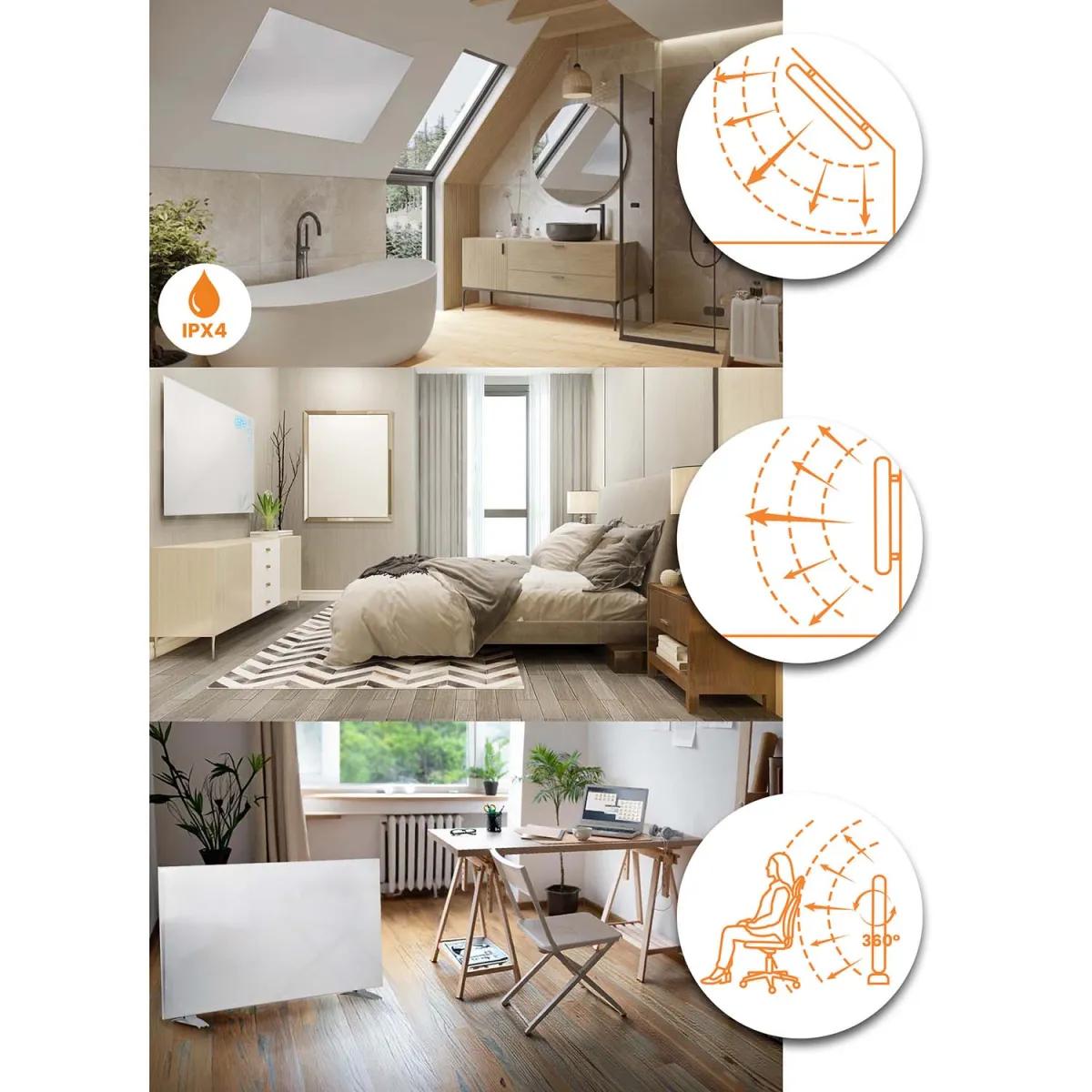 Dupla túlmelegedés elleni védelemmel és beépített hőmérséklet-érzékelővel rendelkezik a nagyobb biztonság érdekében használat közben. A panel Carbon Crystal (távoli infravörös) technológiát használ, amelynek köszönhetően gyorsan és hatékonyan melegíti fel a helyiséget, a levegő szárítása nélkül, és a napfényhez hasonló melegérzetet biztosít.