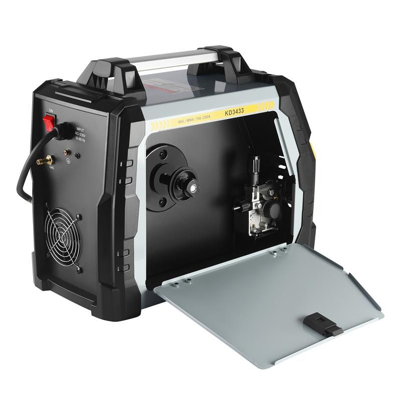 Az inverteres hegesztő, MIG Flux MMA TigLift SYNERGIA, 250A | KD3433 rugalmas hegesztési megoldást kínál különféle anyagokhoz. Ez egy modern multifunkcionális eszköz, amely sikeresen használható mind otthoni műhelyekben, mind professzionális műveletekben. A MIG/MAG, MMA és Lift-TIG módszerek támogatásának köszönhetően széleskörű hegesztési munkákat tesz lehetővé, beleértve a vékony horganyzott lemezek forrasztását akár 3 mm vastagig.