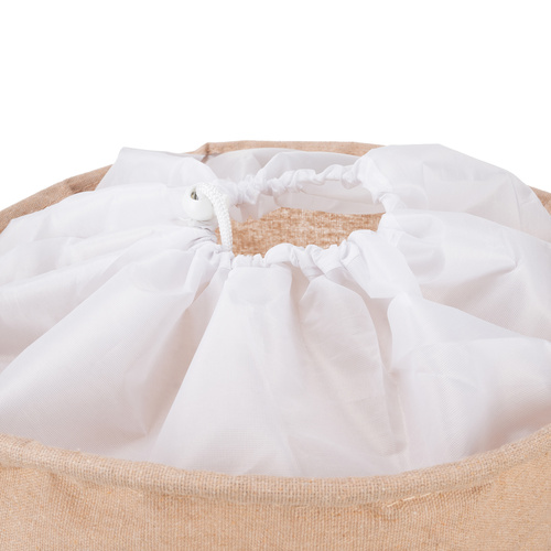 A játékkosár, 35L, bézs | Kruzzel praktikus kosárként szolgál gyermekjátékok vagy egyéb háztartási cikkek tárolására. Tartós anyagokból készült, vízálló belső réteggel, amely megvédi a tartalmát a nedvességtől. A kosár húzózsinórral zárható, így a benne lévő tárgyak nem szóródhatnak ki, és használaton kívül egyszerűen összecsukható.