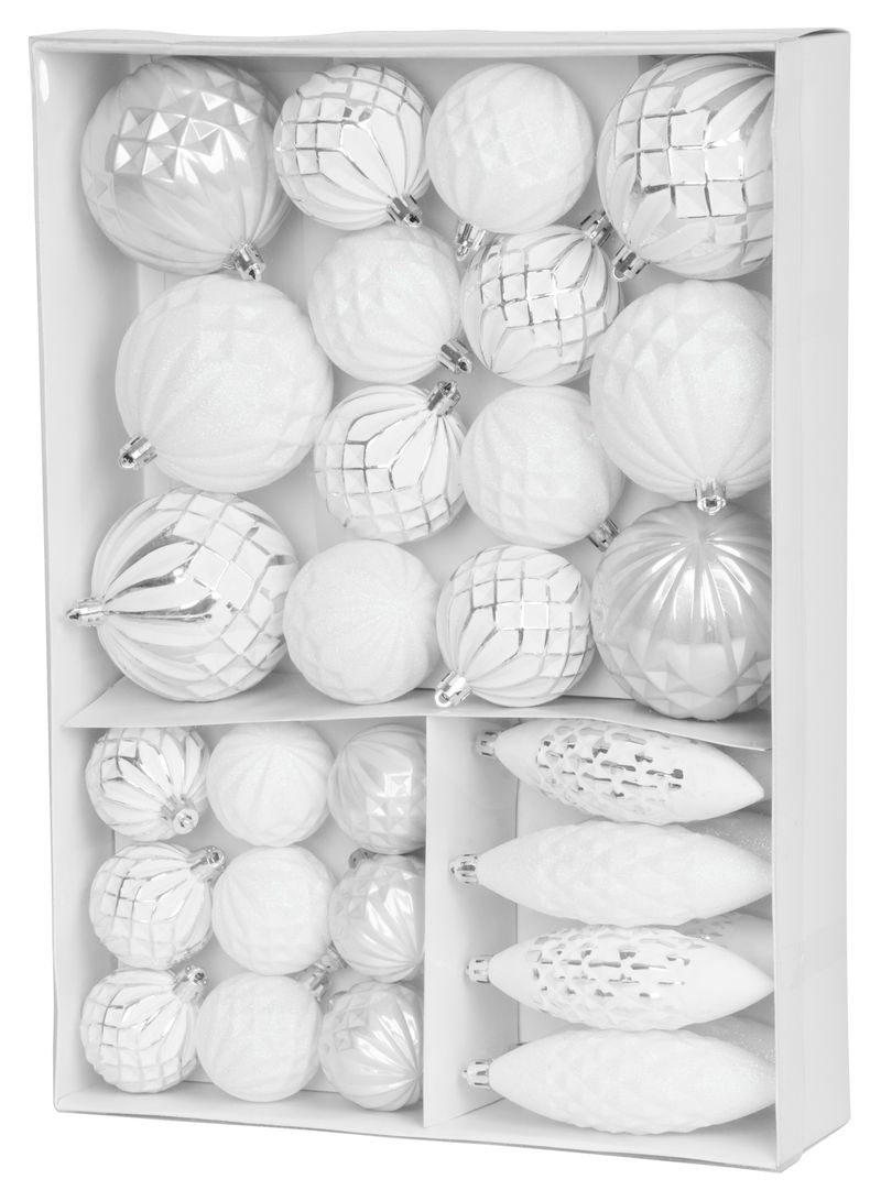 Karácsonyi díszek, 31 db, fehér-ezüst | MagicHome