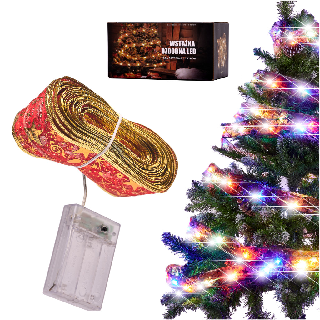 Karácsonyi fények, szalag, 10m | 100 LED elemes működésű, ideálisak otthonos és ünnepi hangulat megteremtéséhez bárhol. 10 méteres hosszával ideális karácsonyi dekoráció. Száz színes égő teremt ünnepi hangulatot. Az elemes működésnek köszönhetően a szalag bárhová felakasztható. Nyolc világítási mód lehetővé teszi a hangulat gyors megváltoztatását a szobában – csak meg kell nyomni egy gombot. A LED-lánc kiváló minőségű anyagokból készült és teljesen biztonságos. CE tanúsítvánnyal rendelkezik.