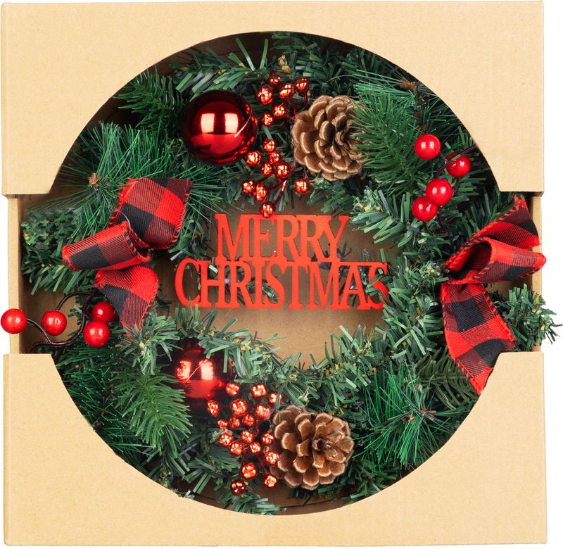 Karácsonyi koszorú, 25cm | A MagicHome egy egyszerű és stílusos kiegészítő, amely nem hiányozhat az ünnepekből egyetlen háztartásból sem. Egy karácsonyi koszorú harmóniát és ünnepi hangulatot teremt minden otthonban. Ez az elegáns, 25 cm átmérőjű koszorú ideális ajtóra, falra vagy asztaldíszként való akasztásra. Univerzális kialakításának köszönhetően bármilyen enteriőrbe illik, és gyönyörűen kiemeli a karácsony varázsát. Kiváló minőségű anyagokból készült, amelyek hosszú élettartamot és több évszakon át tartó használati lehetőséget garantálnak. Használhatod önmagában, vagy ízlésed szerint kiegészítheted égőkkel vagy más dekorációkkal.