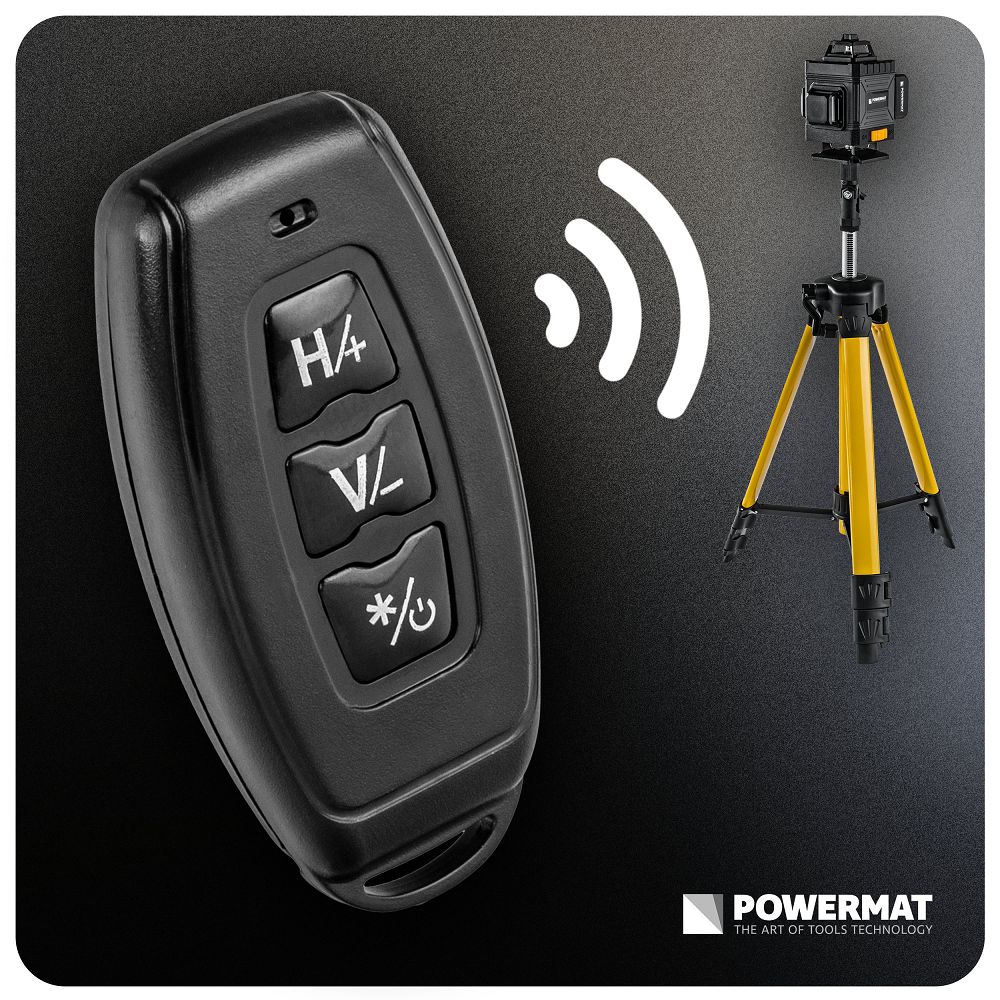 A távirányító lehetővé teszi a lézer távoli vezérlését anélkül, hogy a készülék közelébe kellene mennie. A vonalakat be- és kikapcsolhatja, valamint módosíthatja a beállításokat, miközben a telepítési helyszínen maradhat. Időt takarít meg, mert nem kell minden alkalommal megszakítania a munkáját, amikor módosítania kell a beállításokat.