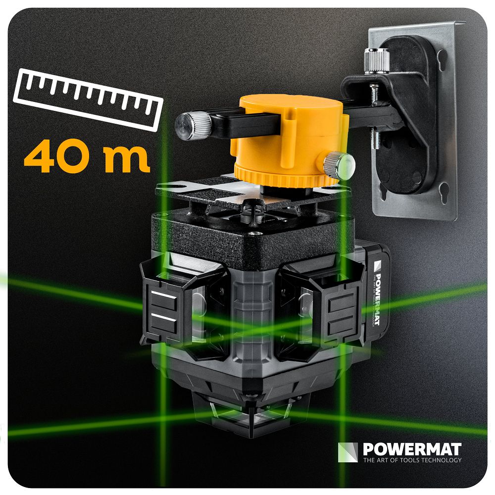 A keresztlézer, 4D, 360° | PM-PLK-4DM2 építési és szerelési munkák során vízszintes és függőleges vonalak precíz megjelölésére szolgál. A lézer 16 vonalat generál, amelyek teljes 360°-os szöget fednek le, lehetővé téve a vízszintes és függőleges szint ellenőrzését a helyiségben. Nem kell mozgatni a készüléket, mivel a vonalak befedik a falakat, a mennyezetet és a padlót. Lámpák, csempék, szerkezetek és befejező elemek telepítésekor állandó referenciapontot kap.